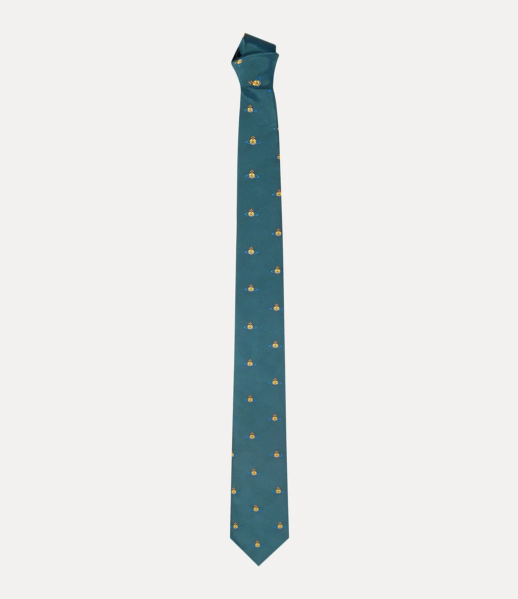 Vivienne Westwood silk tie offers the house’s multi-coloured orb jacquard across the design and features a wide blade that falls into a classic pointed tip.