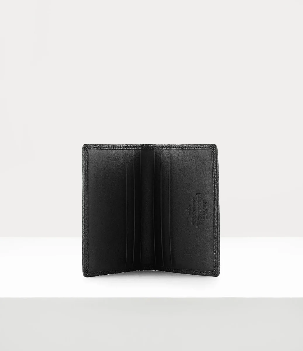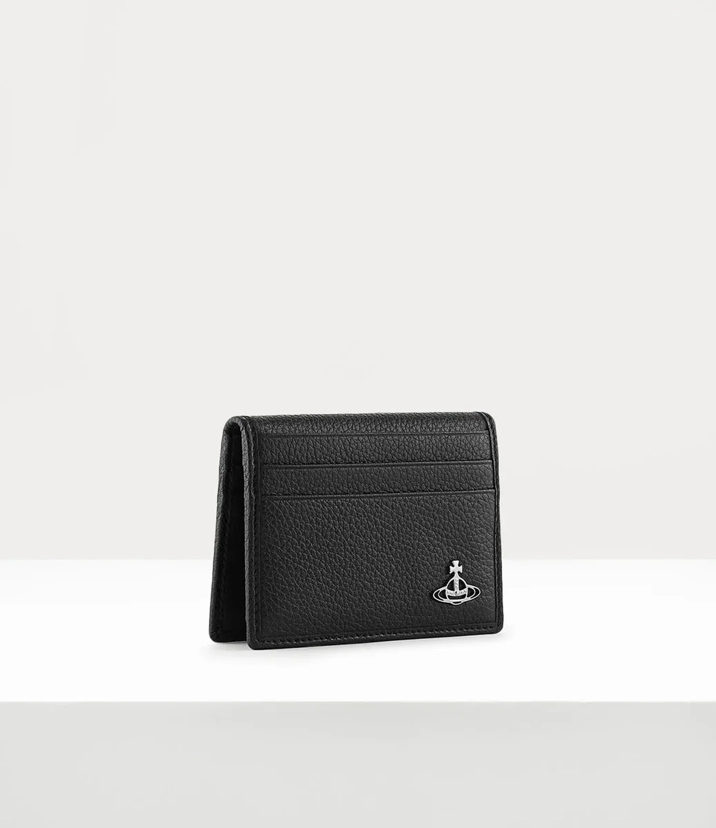 Our Man. Card holder features a bi-fold silhouette, complete with twelve card slots across the design. The piece offers an all-over grained texture, finished with a silver-tone stud at the front, which symbolises tradition, encircled by the celestial rings of Saturn, representing the future.