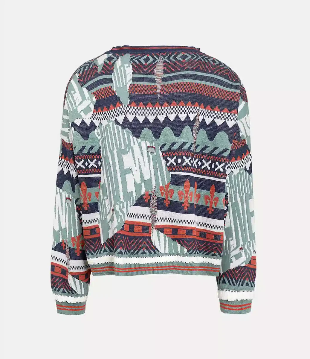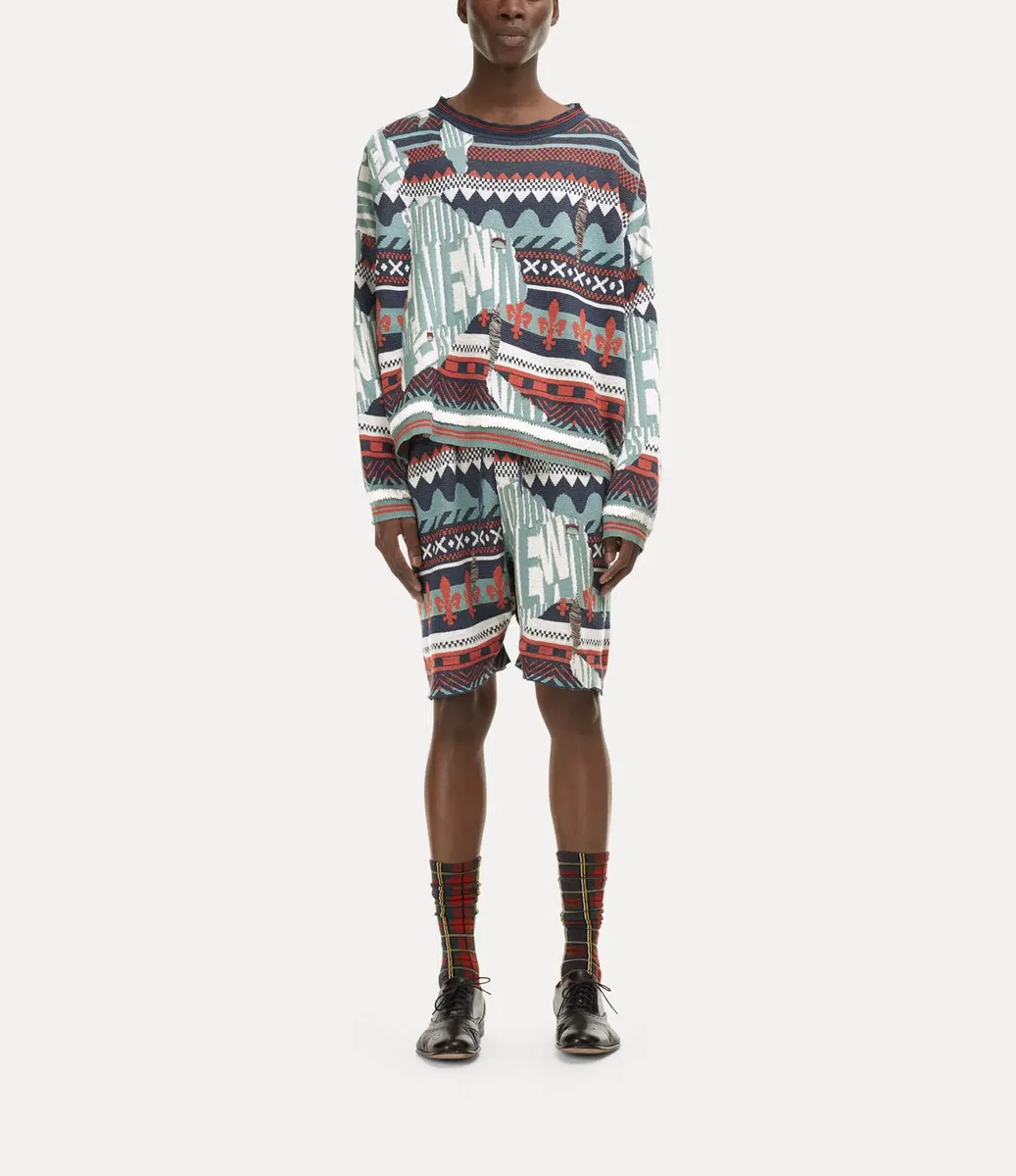 Vivienne Westwood Broken Fair Isle jumper features a Fair Isle jacquard with an oversized fit, complete with distressed details and long, roomy sleeves.