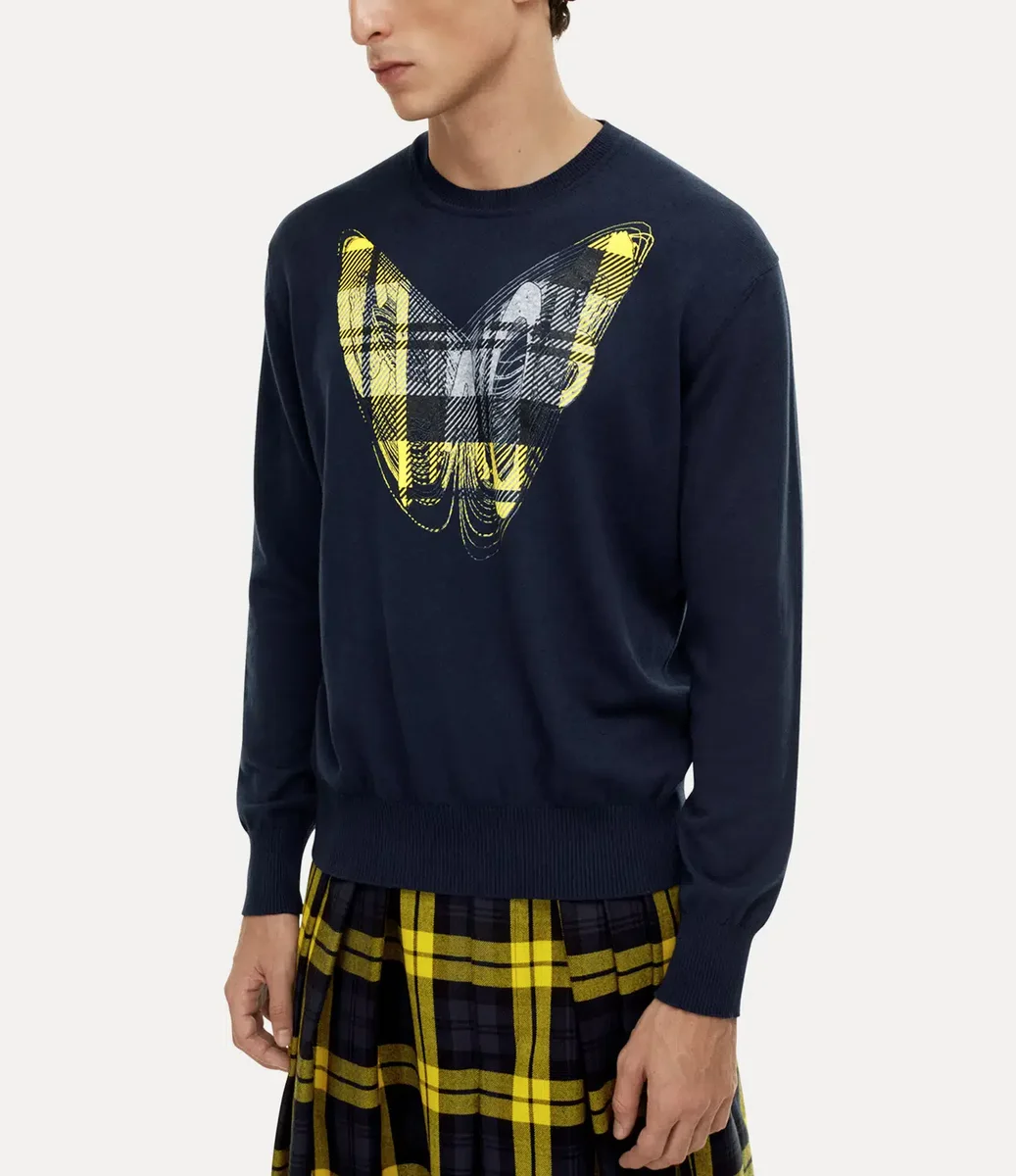 Vivienne Westwood Chaos jumper in a cotton-cashmere blend features a butterfly motif, printed with the tartan ‘Chaos’ artwork, complete with long sleeves.