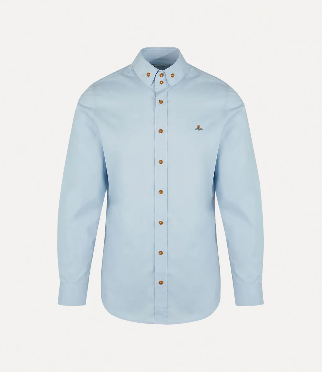 The silhouette of the Two Button Krall shirt draws inspiration from an archival design, featuring Vivienne’s iconic two-button collar. The piece offersour signature orb embroidery on the left-hand side of the chest – synonymous with Vivienne’s vision of launching tradition into the future.