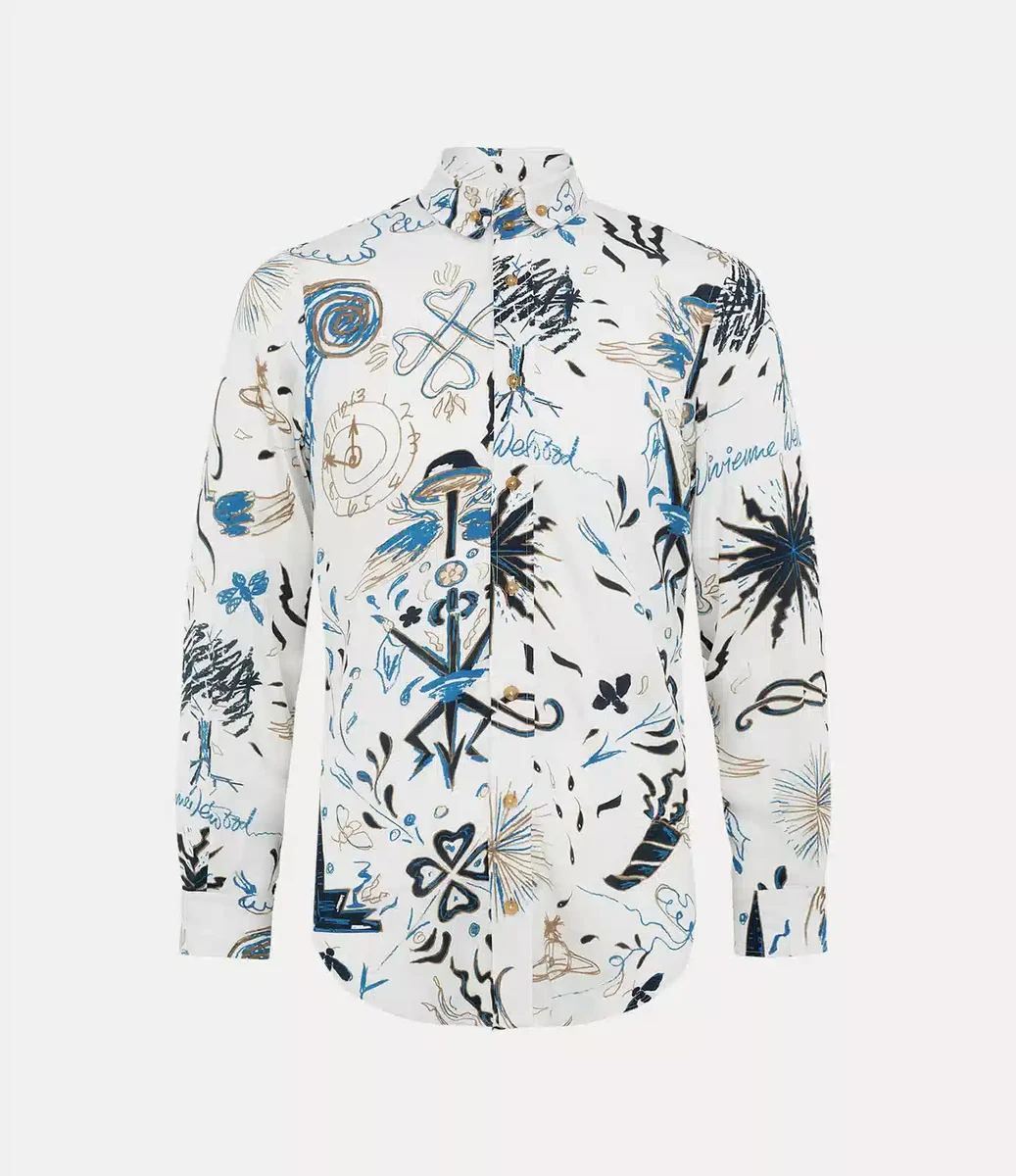 Vivienne Westwood Two Button Krall shirt in soft cotton features Vivienne’s signature two-button collar, complete with an abstract graphic print.