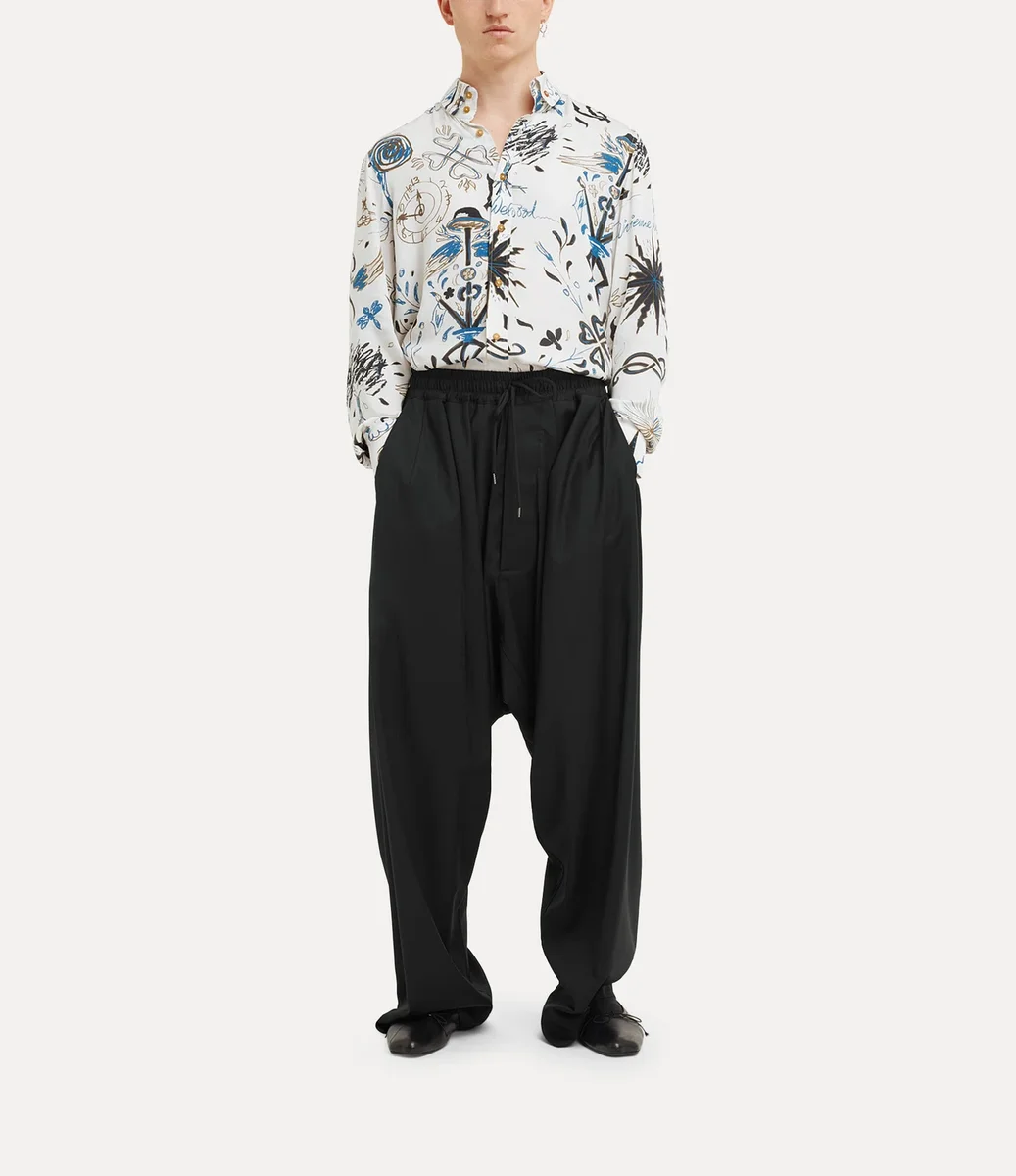 The silhouette of the Two Button Krall shirt draws inspiration from an archival design, featuring Vivienne’s signature two-button collar. Inspired by ‘The Laughing Cavalier’ by Frans Hals, the piece is printed with an abstract graphic design incorporating the house’s signature iconography.