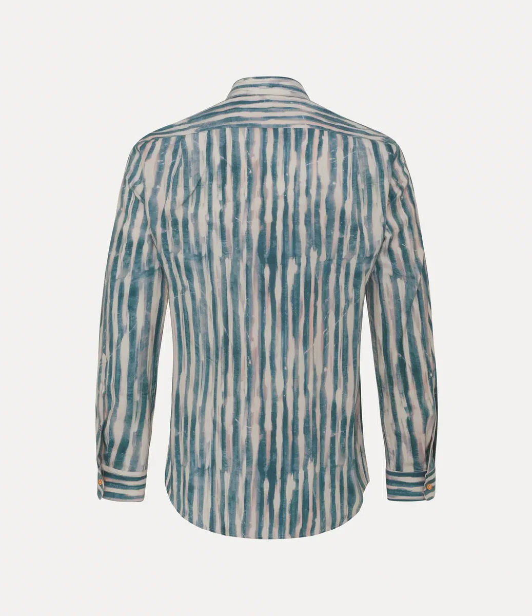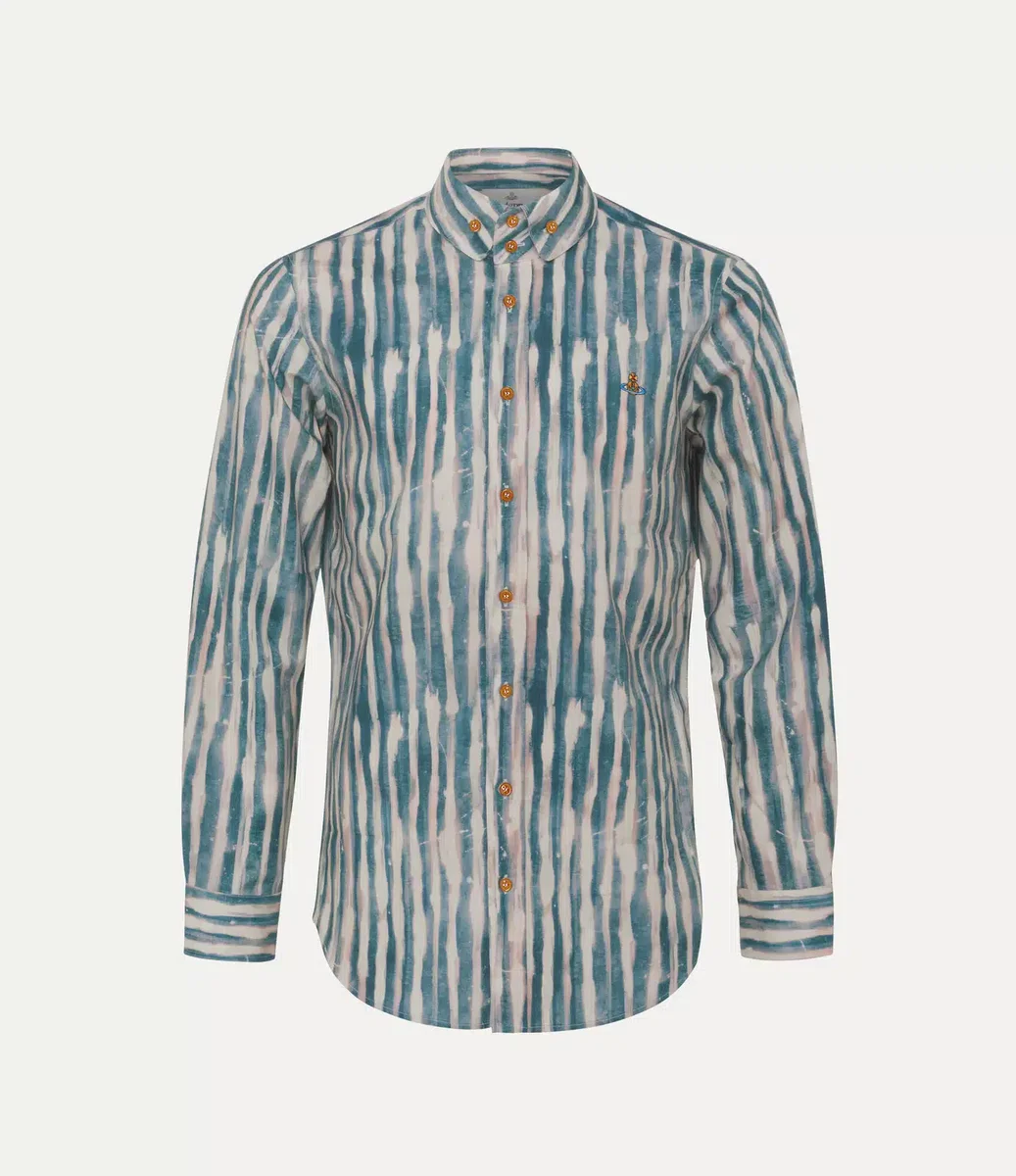 Vivienne Westwood Two Button Krall shirt in cotton features the house’s signature two-button collar, complete with rough hand-painted brushstrokes.