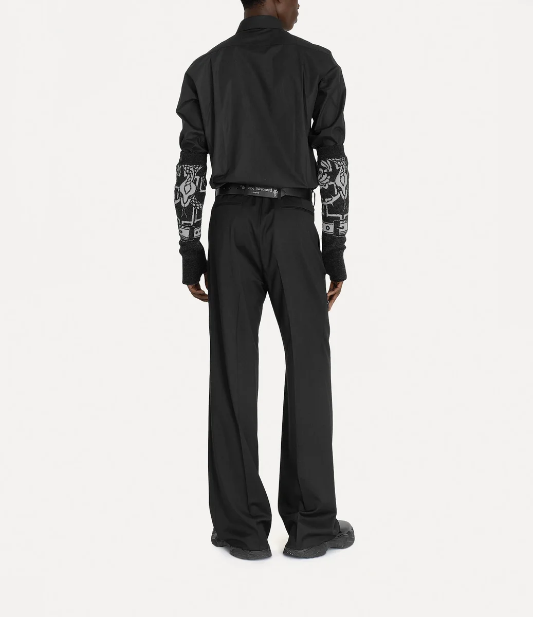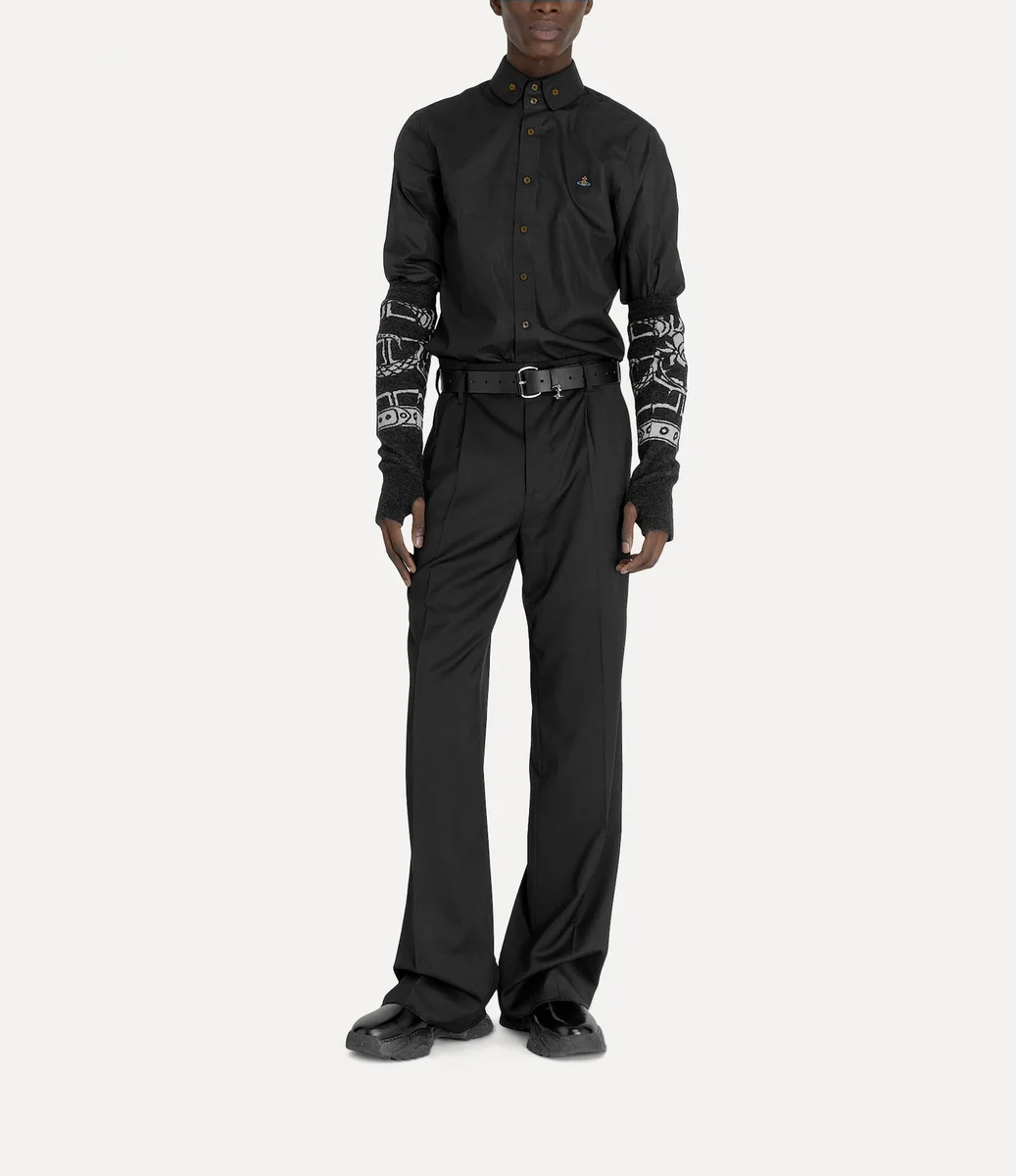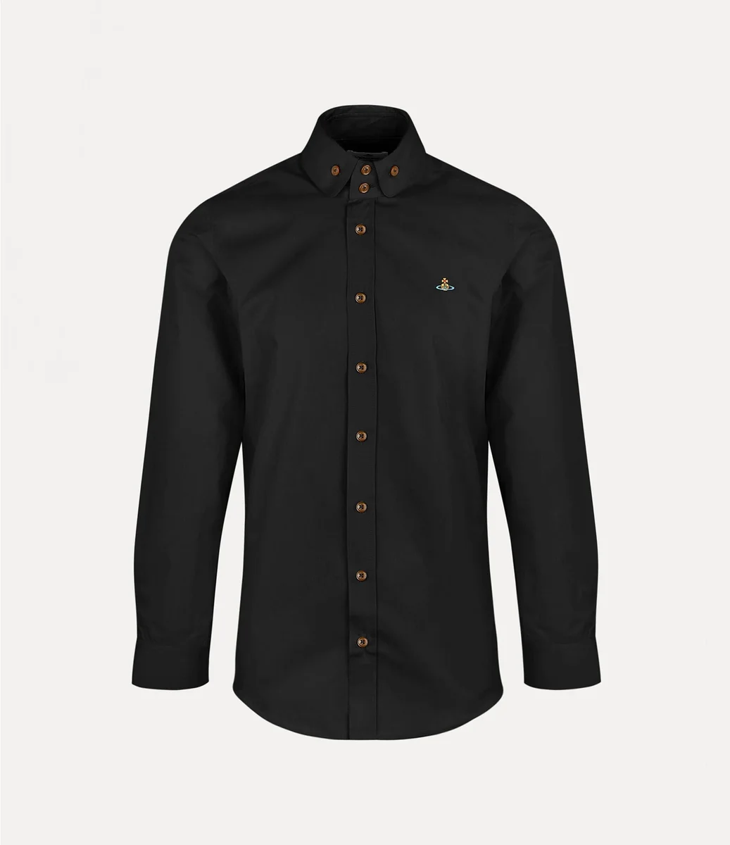 The silhouette of the Two Button Krall shirt draws inspiration from an archival design, featuring Vivienne’s iconic two-button collar. The piece offersour signature orb embroidery on the left-hand side of the chest – synonymous with Vivienne’s vision of launching tradition into the future.