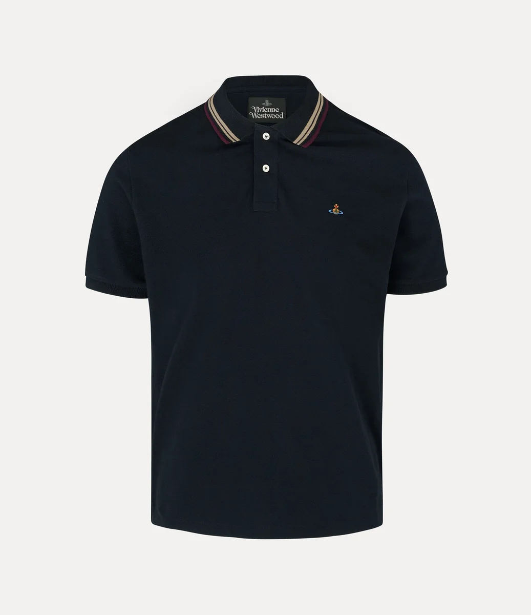 Vivienne Westwood Classic polo in soft cotton features a contrasting collar, complete with mother-of-pearl buttoned fastening.