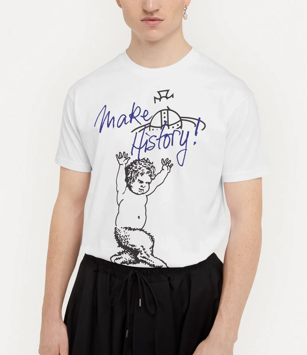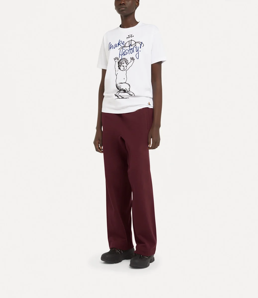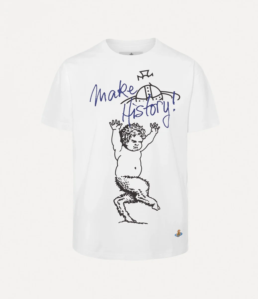 The Fawn Classic t-shirt offers a crew neckline, adorned with ribbed details at the trims for a classic finish. The piece features the house’s ‘Fawn’ motif, first seen in the Autumn-Winter 2002 ‘Anglophilia’ collection, complete with the ‘Make History’ slogan – echoing one of Vivienne’s key messages on climate change.