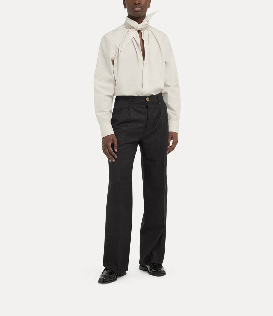 Vivienne Westwood Rafael trousers in soft wool are delicately woven with a brushed metallic finish, complete with a high-rise waistband.