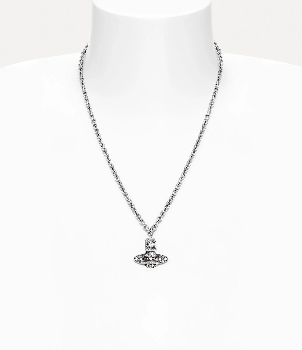 Inspired by Vivienne’s vision for launching tradition into the future, the silhouette of the Man. Carmela Bas Relief Pendant necklace features our signature two-dimensional orb motif in the centre of the chunky link chain. The piece adopts glistening crystal details in the central globe and Saturn ring, complete with polished, silver-tone plating.