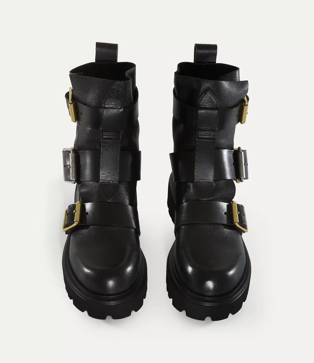 Vivienne Westwood Empire boots feature an oiled leather finish, belted leather straps and roller-buckle fastening complete with a chunky ankle-length fit.