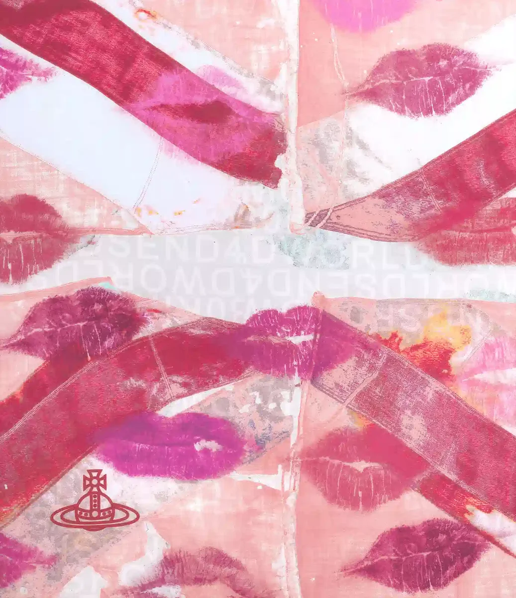 Vivienne Westwood Union Jack Kiss square is made of silk and incorporates archival artworks and features the house’s orb motif printed all over the design.