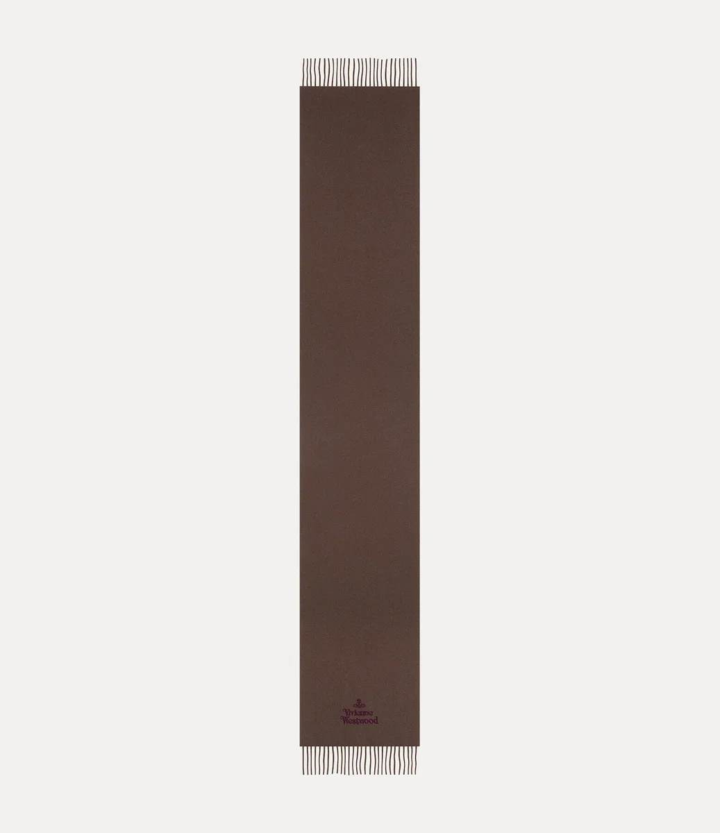 Vivienne Westwood Embroidered scarf features a soft woollen silhouette, branded with the house’s lettering motif at the bottom of the design.