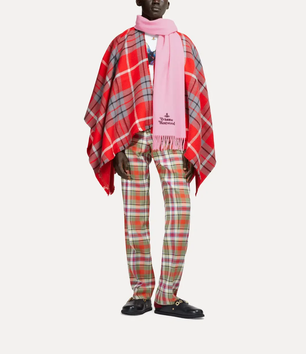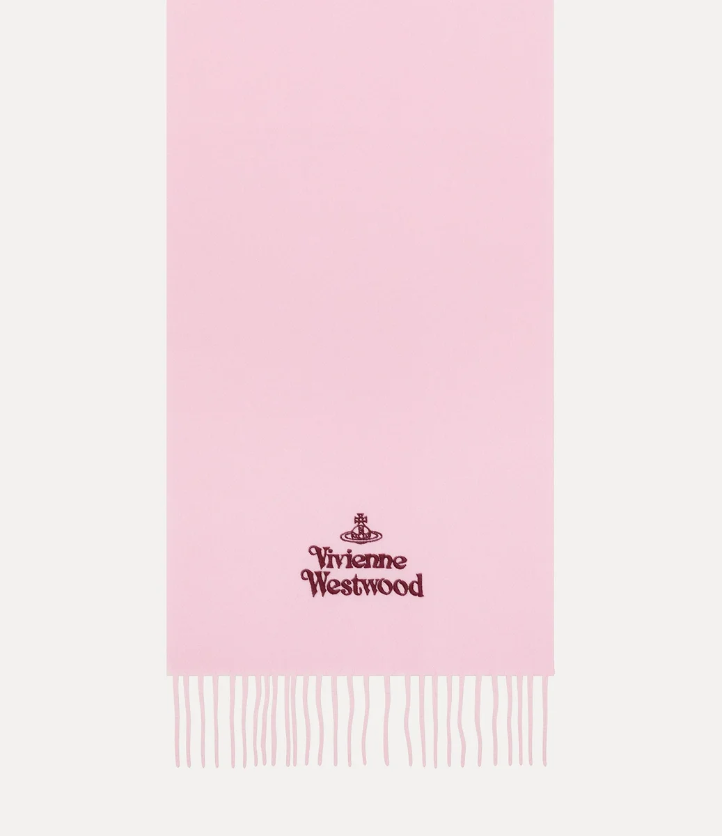 Vivienne Westwood Embroidered scarf features a soft woollen silhouette, branded with the house’s lettering motif at the bottom of the design.