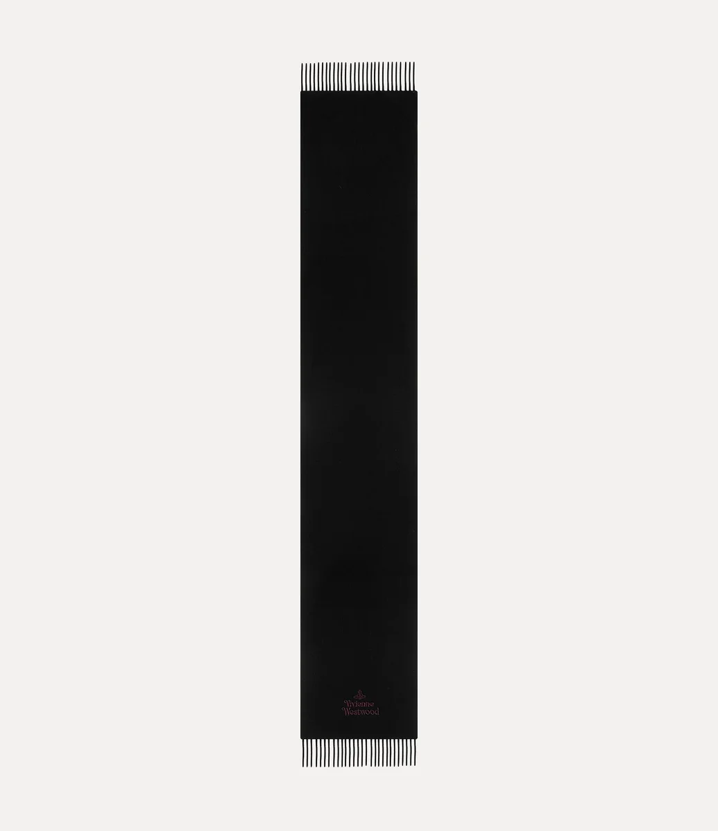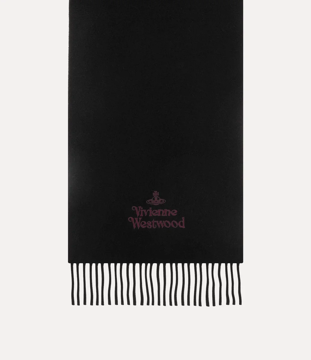 Vivienne Westwood Embroidered scarf features a soft woollen silhouette, branded with the house’s lettering motif at the bottom of the design.