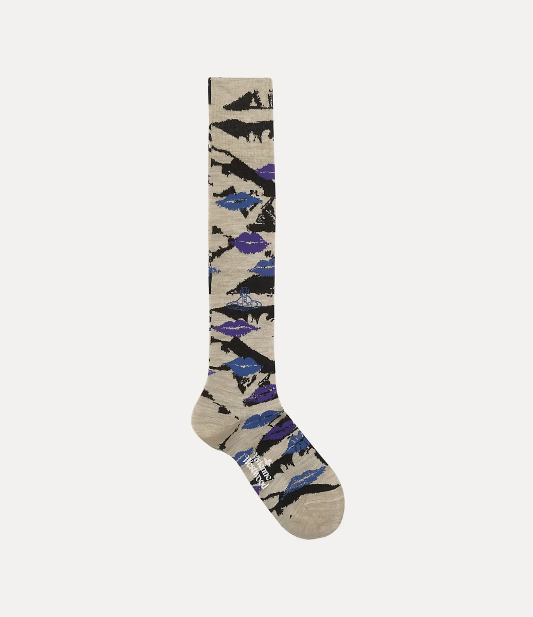 Vivienne Westwood High socks in a cotton-blend features an ankle-length design and receives the lipstick kisses motif, finished with our orb logo.