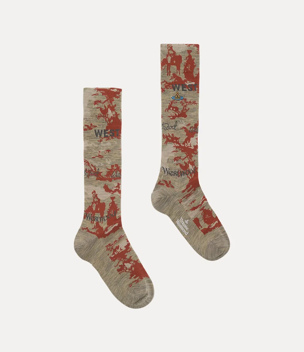 Our ankle-length socks are knitted with a Toile de Jouy jacquard, offering a romantic pastoral motif. The pair are crafted from an extra-fine merino wool blend and finished with the house’s orb motif embroidered in multi-coloured thread.