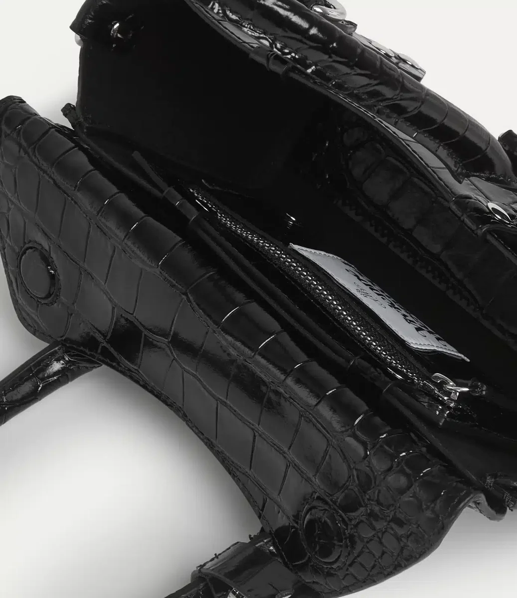 Vivienne Westwood Bettina Mini Crossbody bag features a croc-effect embossed leather profile.