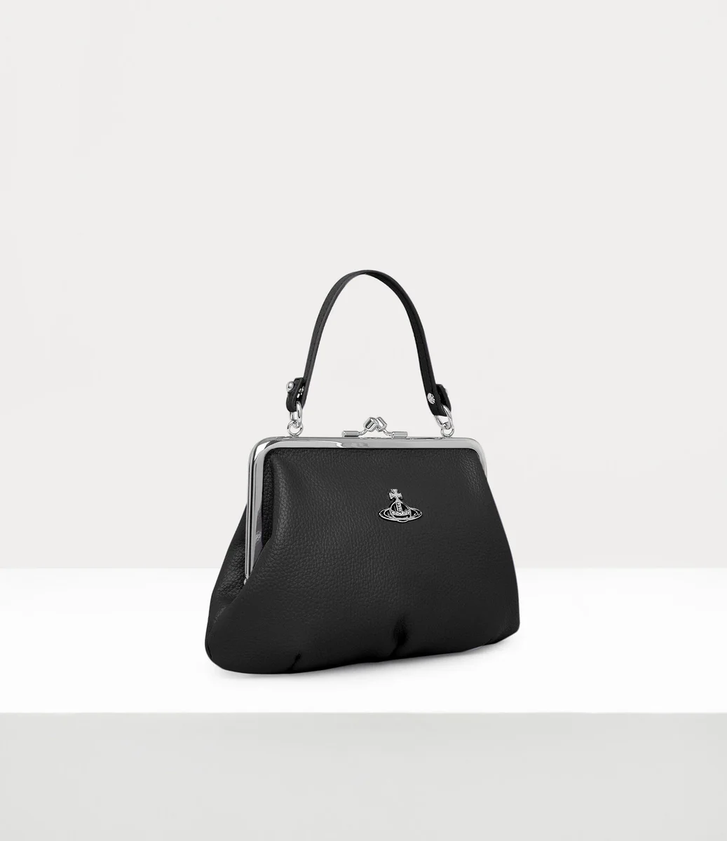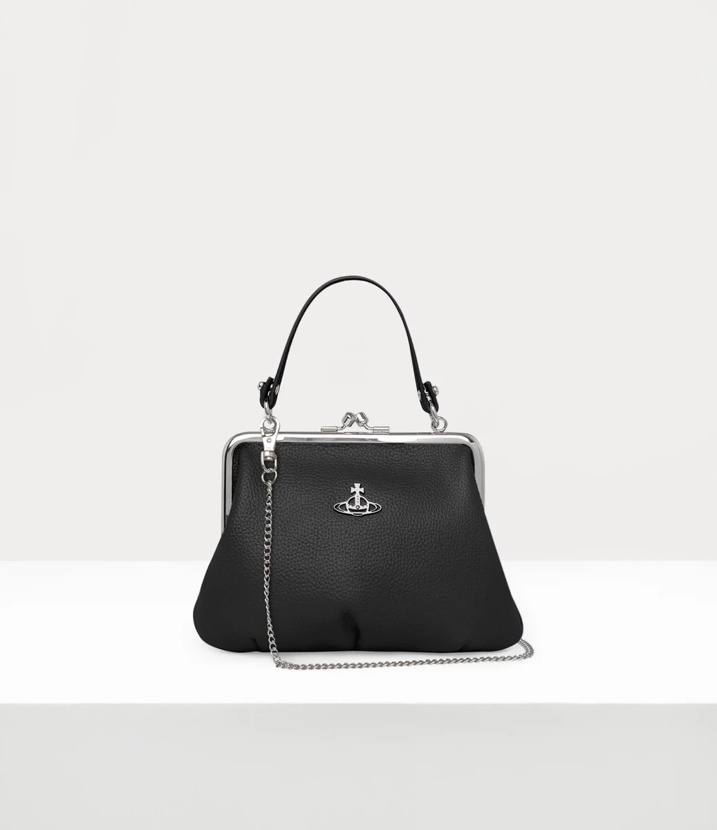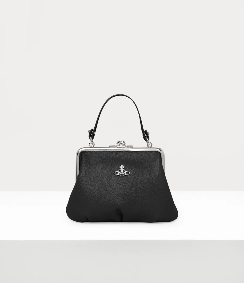 Our Granny Frame purse features a vintage-inspired silhouette and a kiss-lock closure, recalling antique coin purses from the early 20th century. The piece receives a soft PU leather finish, complete with our classic ‘Line orb’ motif, which symbolises tradition, encircled by the celestial rings of Saturn, symbolising the future.