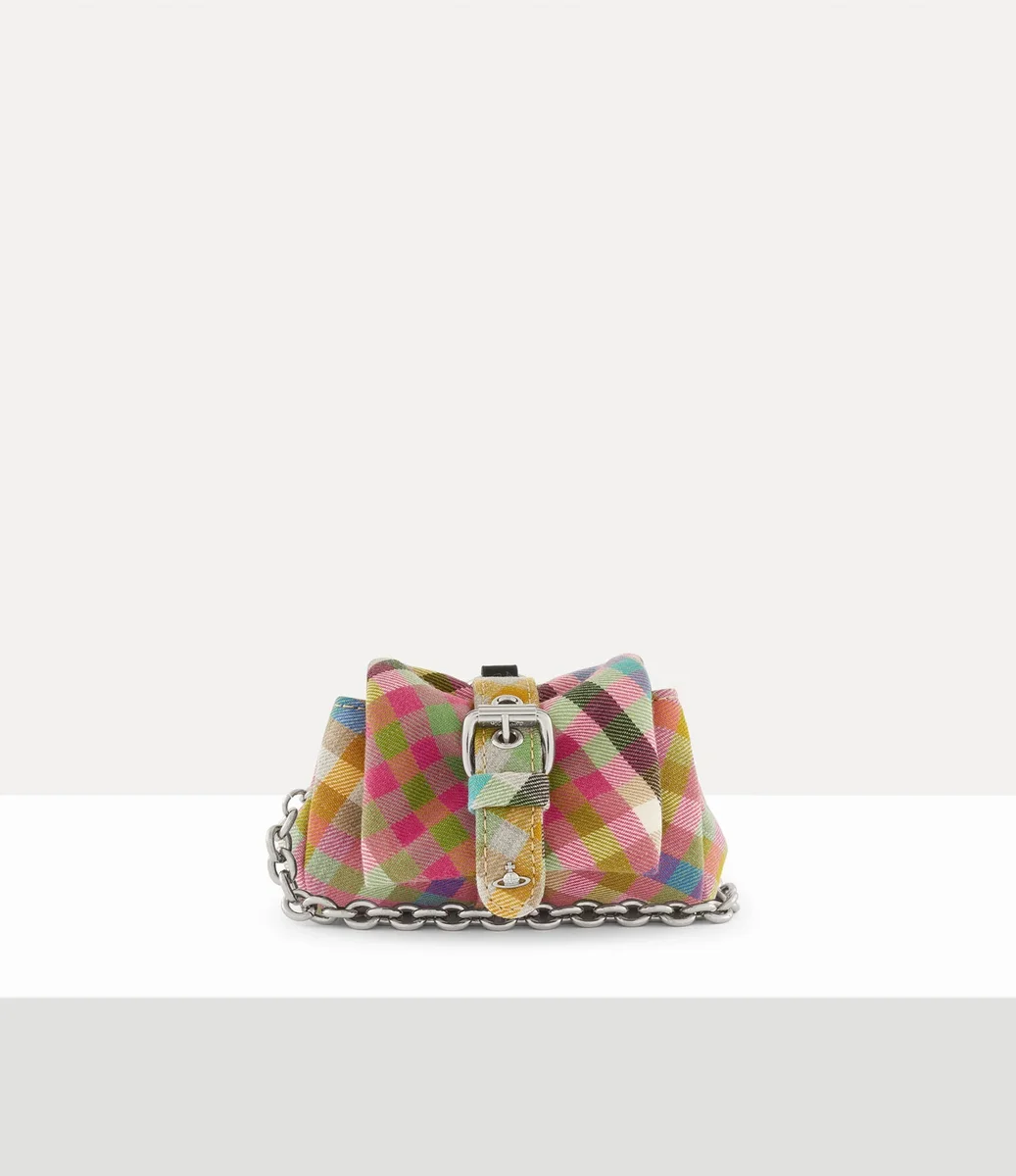 Our Hazel Treasure Charm handbag reimagines the house’s signature ‘Hazel Treasure’ design, offering this season’s vibrant woollen ‘Heather Check’ motif. Crafted with a sculptural belt strap that wraps around the softly structured silhouette, the piece is finished with our bas relief orb emblem at the front.