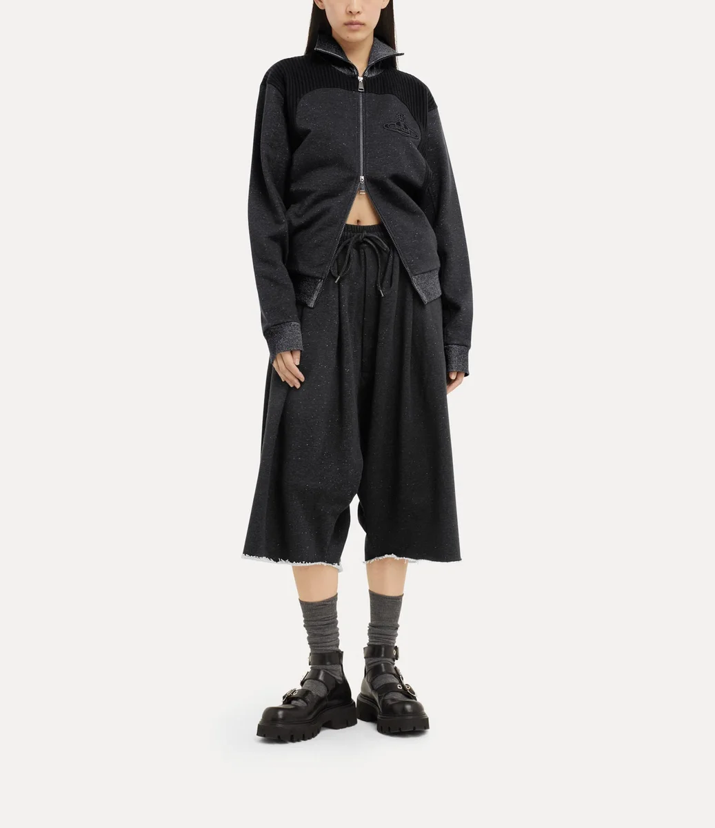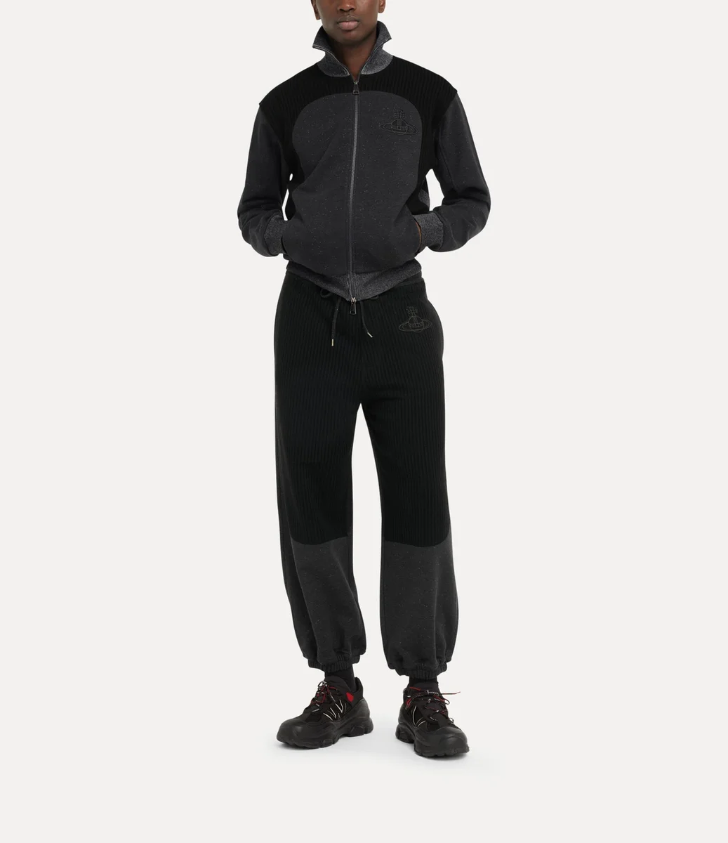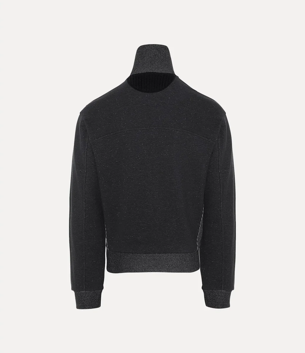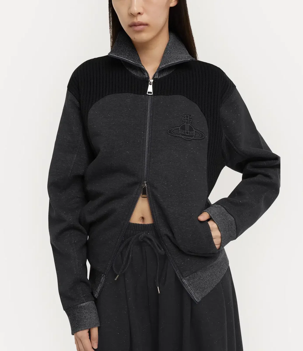 This season’s Alien Track jacket reintroduces the two-way zip fastening – a detail first used by Vivienne Westwood in the late 1970s and early 1980s as a symbol of non-conformity and a hallmark of her rebellious punk aesthetic. Cut with a high neckline and detailed with ribbed panels throughout, the piece is finished with the house’s Graffiti orb motif, subtly embroidered at the chest in tonal thread.