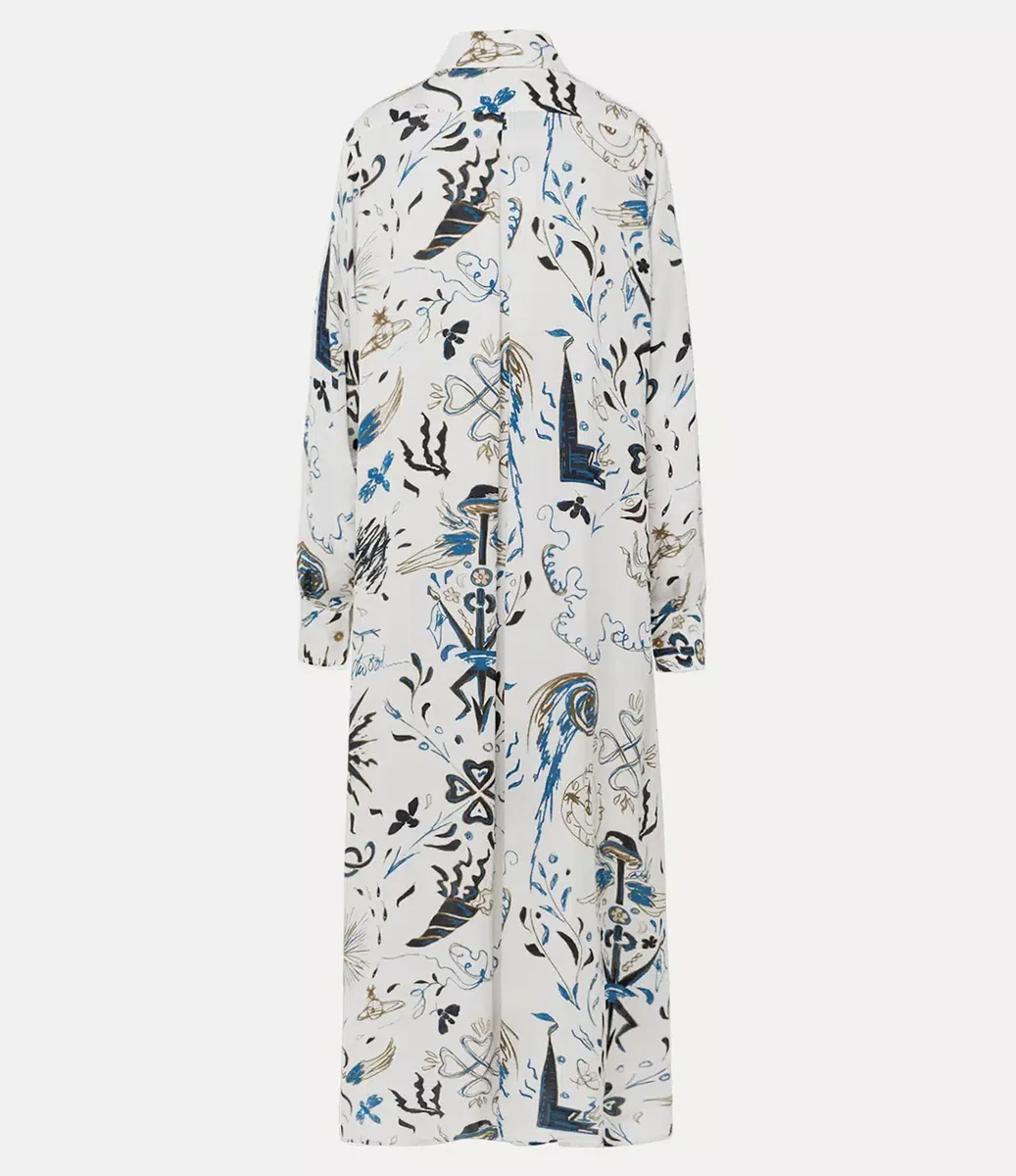 Our VW shirt dress in viscose is printed with an abstract graphic design, featuring the house’s motifs.