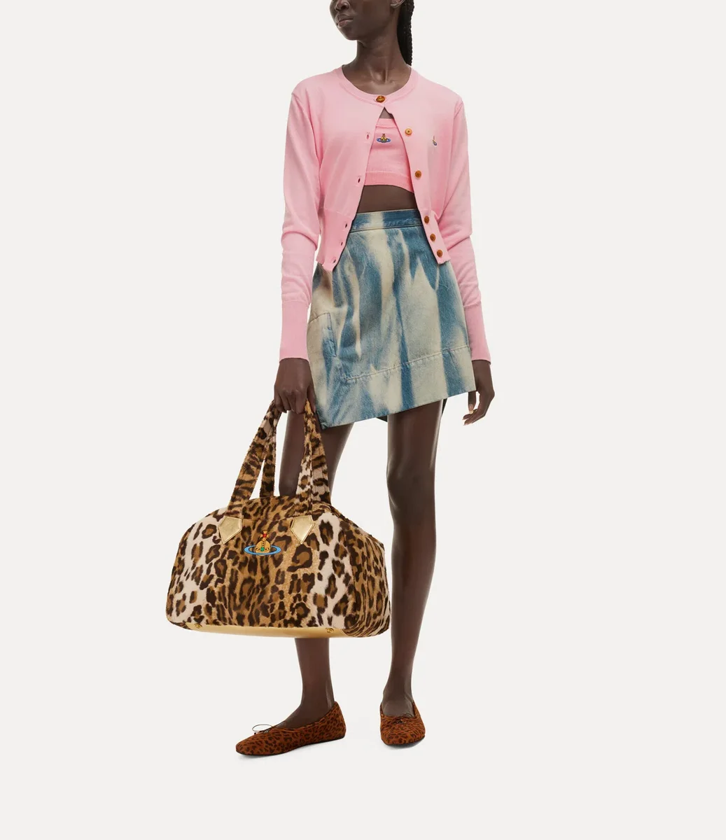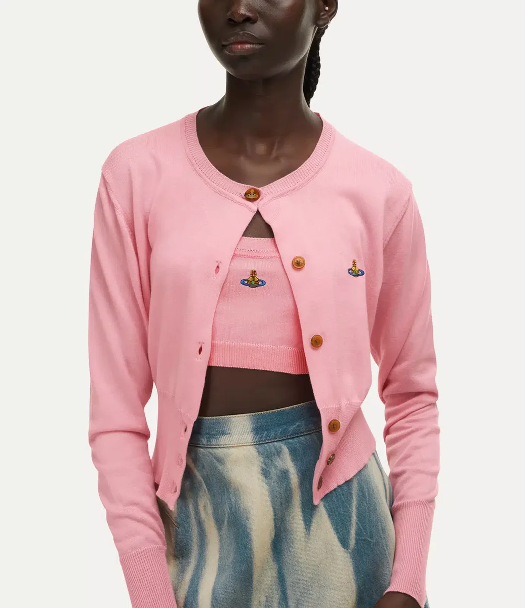 Vivienne Westwood Bea Cropped cardigan in a soft cotton-cashmere blend, adorned with a multi-coloured orb embroidery on the left-hand side of the chest.