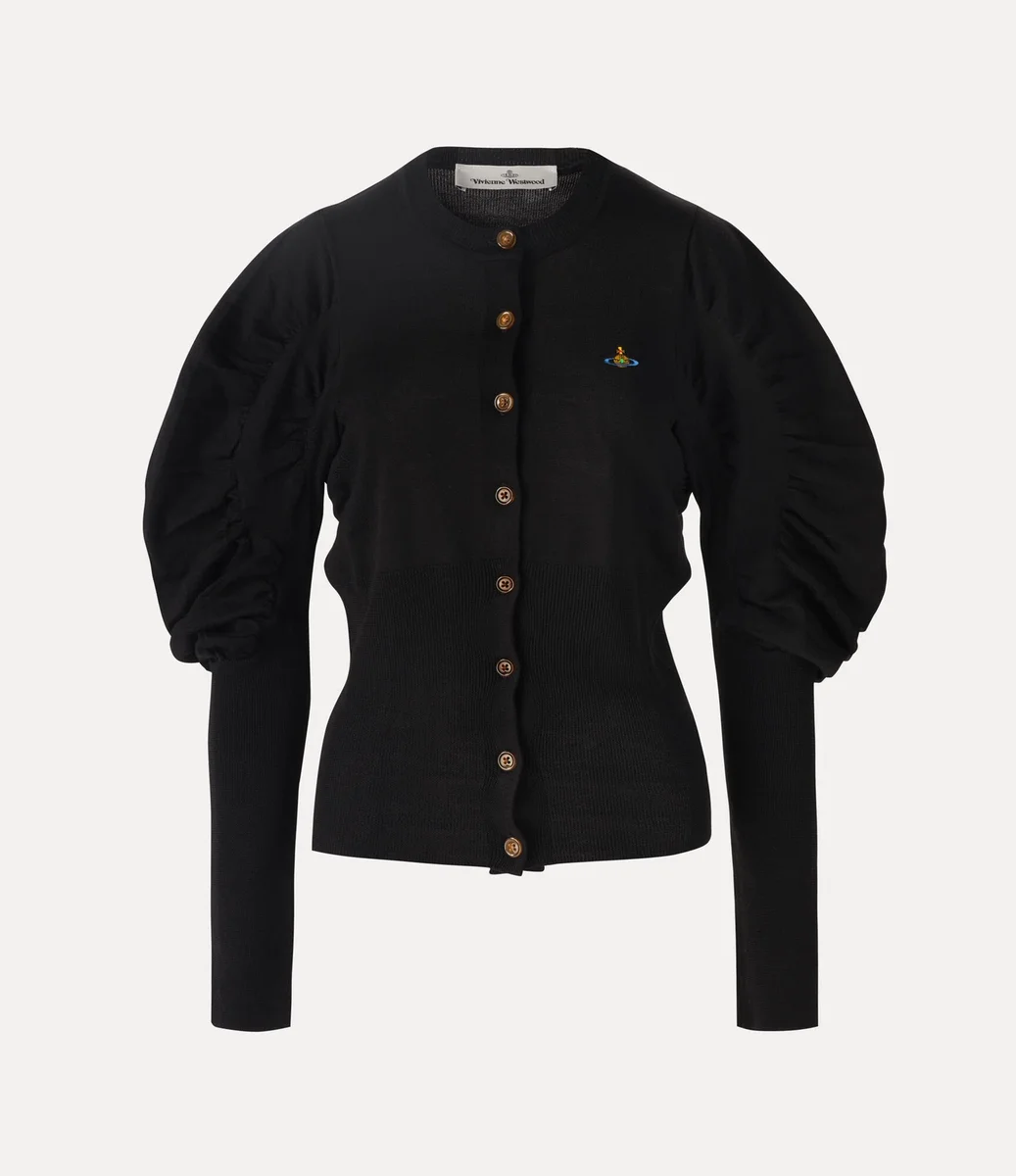 The Eli cardigan returns this season in a soft wool finish, featuring a fitted shape, voluminous sleeves, and elongated ribbed trims at the cuffs and hem. The design is complete with themulti-coloured embroidered orb at the chest – embodying the ethos of linking the past to the future.