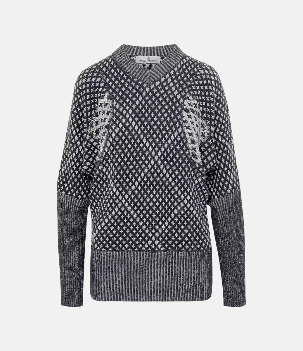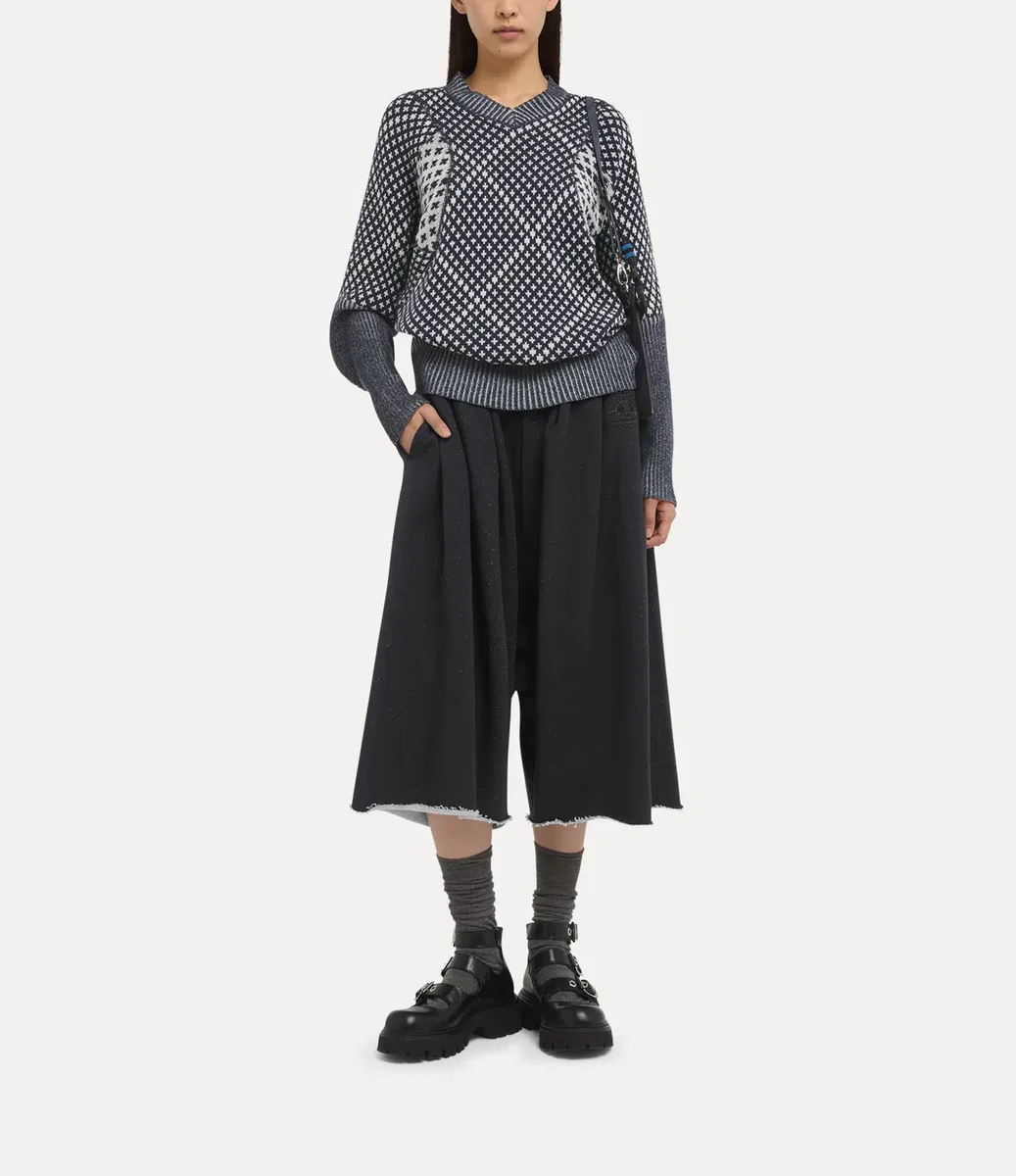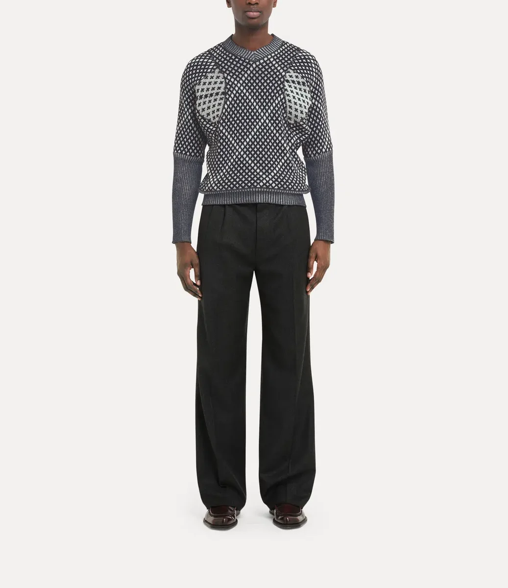 Knitted from a soft cotton-wool blend, our Pourpoint jumper features the archival ‘Crosses Argyle’ jacquard, overlaid with a ‘Distressed Tartan’ motif. Cut with a ribbed V-neckline and long sleeves with inset panels, the piece is finished with ribbed trims and an embroidered ‘Chaos Orb’ emblem at the back.