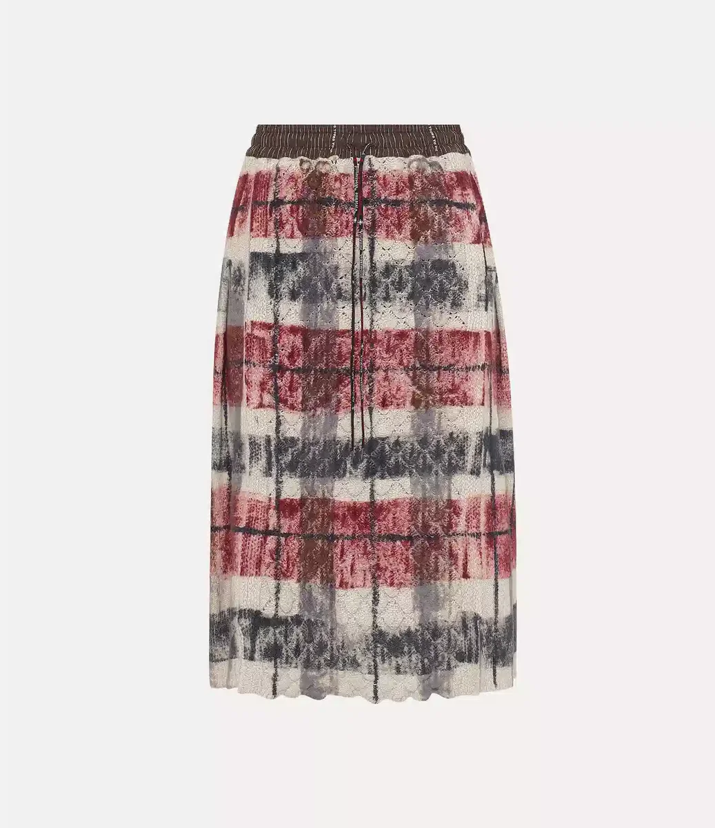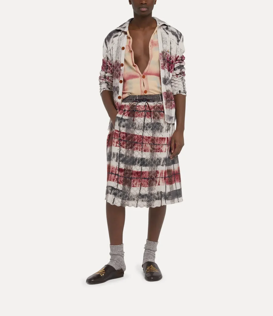 Vivienne Westwood Dual Tartan kilt features a distressed tartan motif, inspired by traditional Scottish Highland regalia.