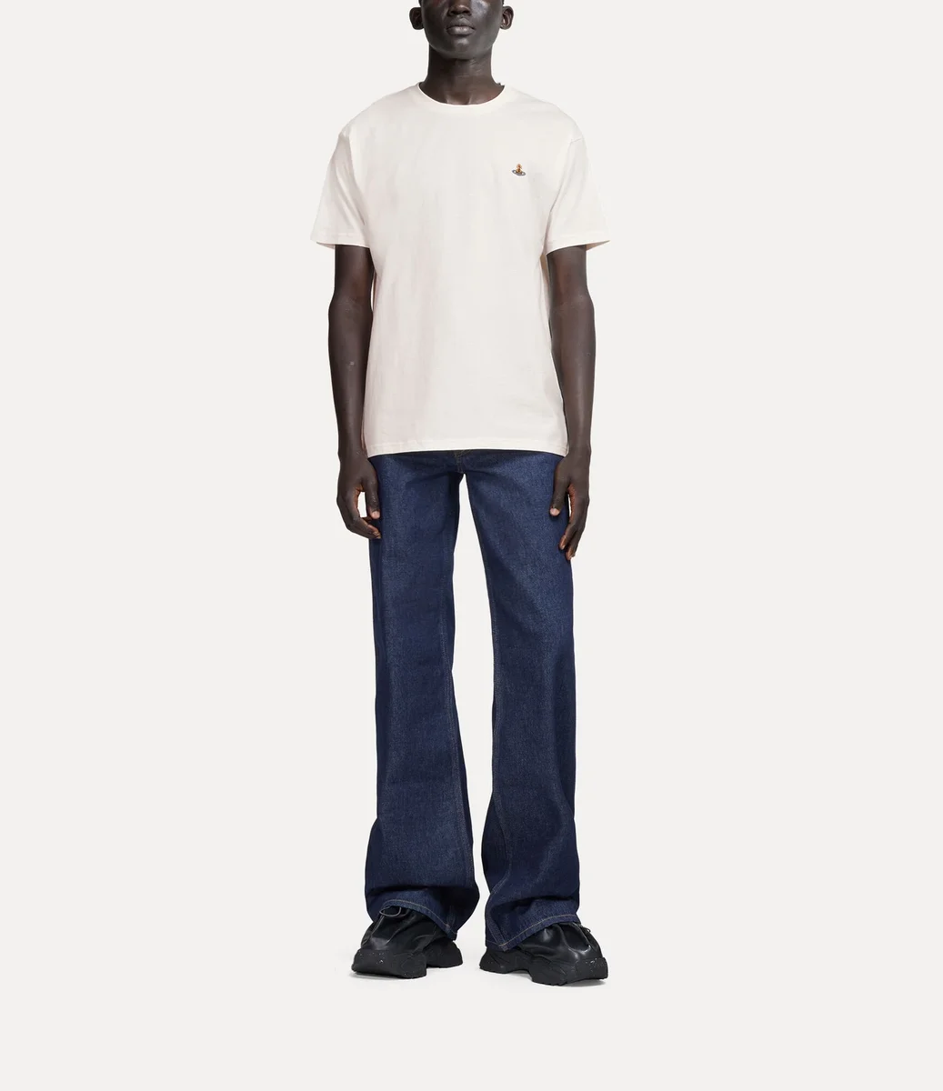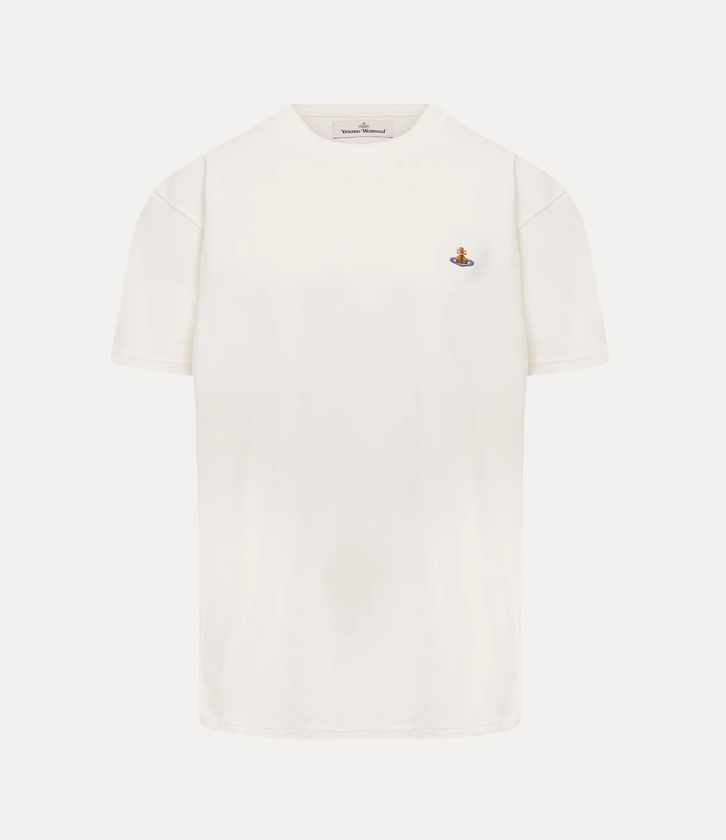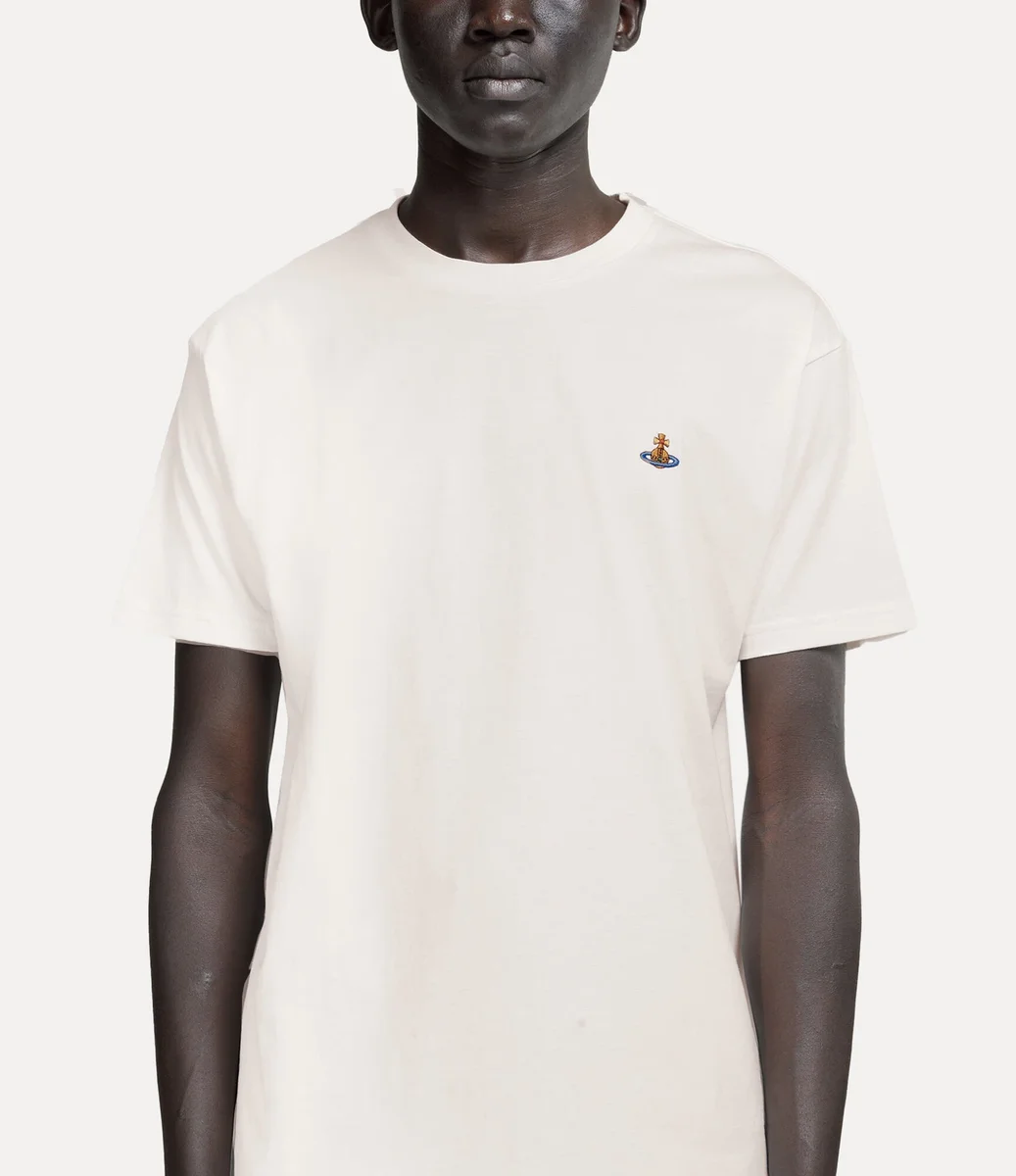 Our Classic t-shirt features a soft cotton silhouette, complete with short sleeves and a round neckline. The piece receives a multi-coloured orb embroidery on the left-hand side of the chest – synonymous with Vivienne’s vision of taking tradition into the future.