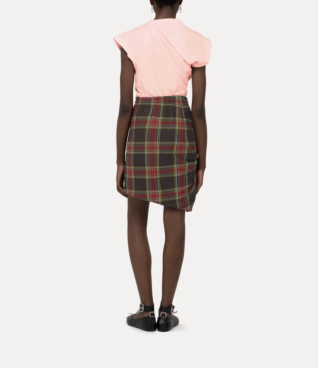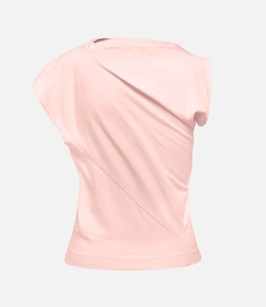 The house’s signature Hebo top has been updated, featuring a soft cotton finish this season and an orb embroidery on the left-hand side of the chest – synonymous with Vivienne’s vision of launching tradition into the future. The silhouette incorporates Vivienne’s signature slash-inspired neckline, drape details and twisted fabric at the back of the design.