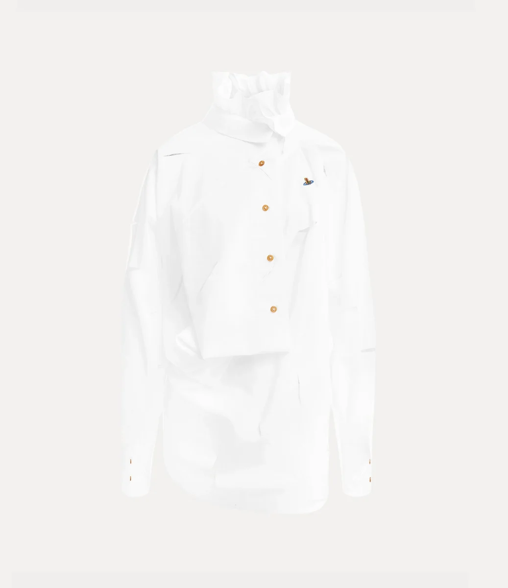 Vivienne Westwood Halston blouse in cotton offers a high-stand ruffled collar, secured with a double-button fastening.