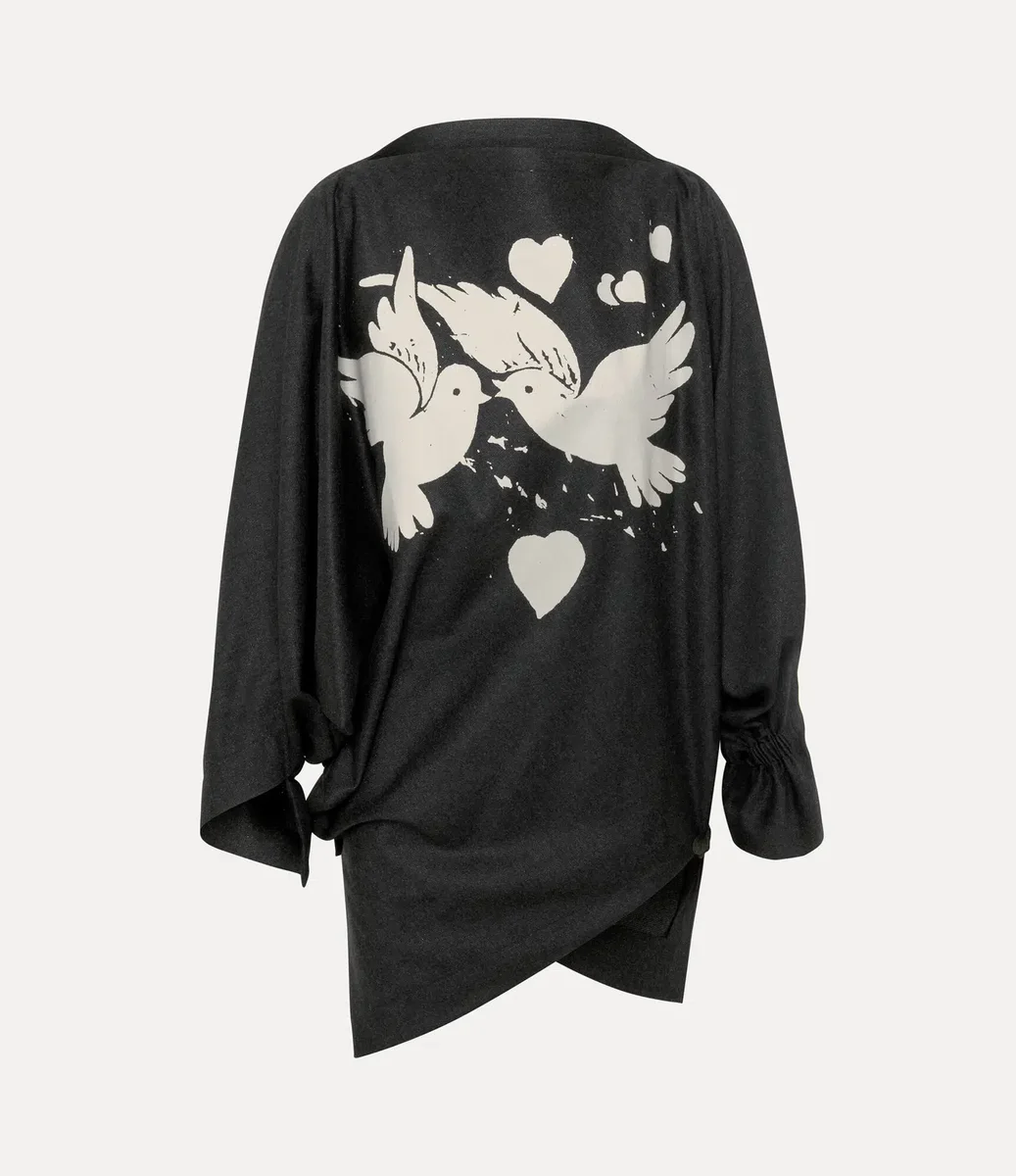 Our Infinity top is crafted from metallic-brushed wool and adorned with the ‘Dove and Heart’ artwork. Detailed with long sleeves that gather at the wrists, it features a wide boat neckline and dropped shoulders, draping into an oversized silhouette that ends in an asymmetric hemline.
