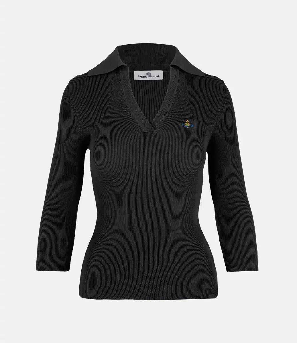 Vivienne Westwood Marina polo sweater is crafted from a cotton-cashmere blend, complete with a fitted silhouette and an embroidered orb.