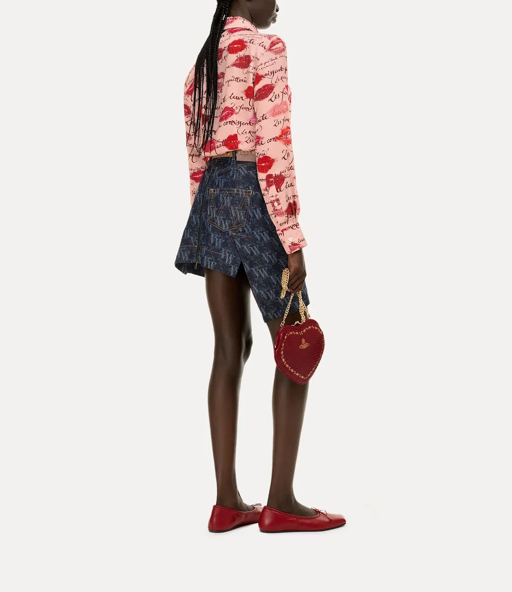 Our Violin Tuxedo shirt features the house’s signature two-button collar, adorned with the ‘Kisses’ artwork, inspired by our ‘Boudoir’ perfume packaging. The piece offers an exaggerated pointed collar, finished with delicate darting at the bust and waist for a sculpted, contoured shape.