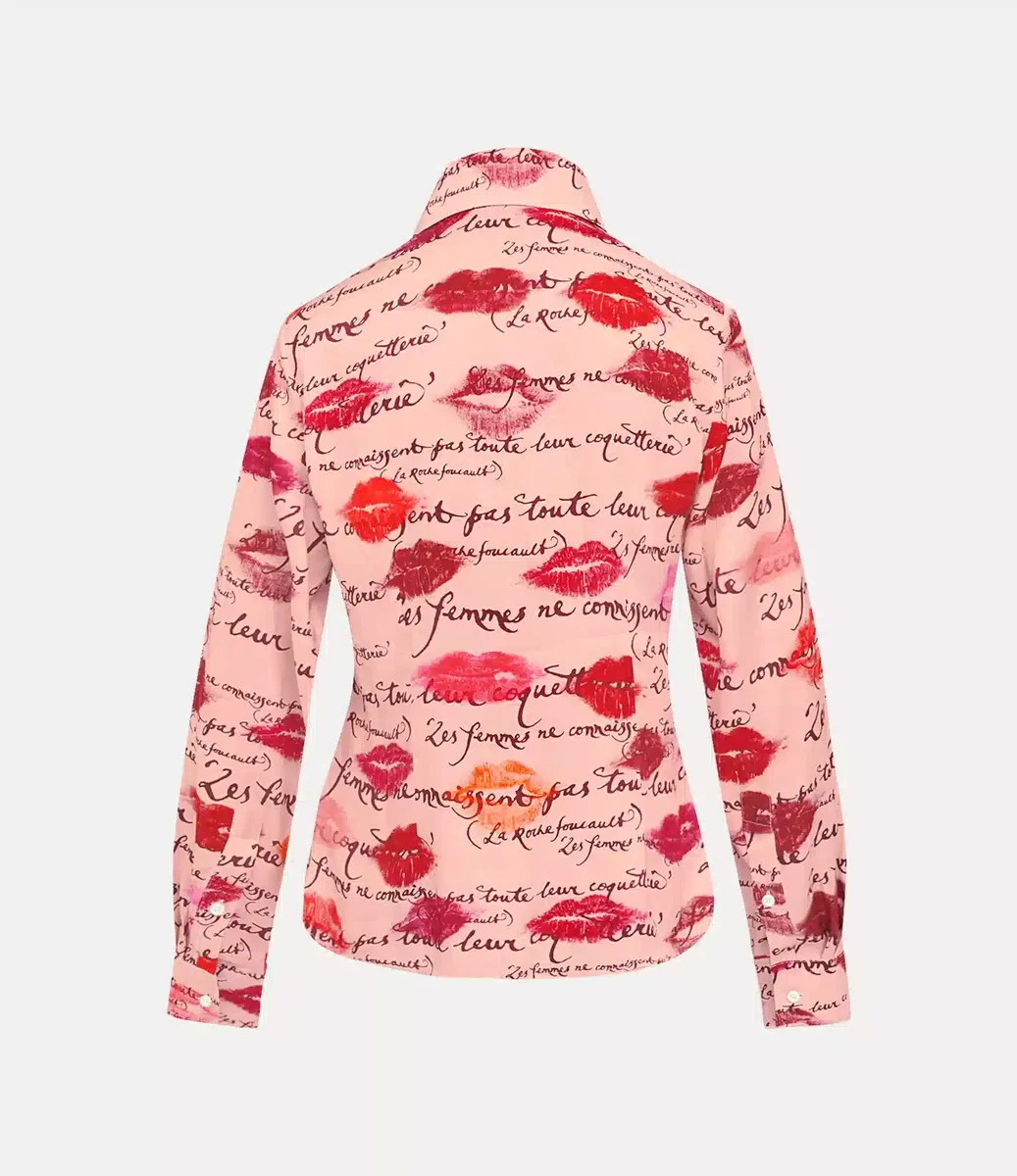 Vivienne Westwood Violin Tuxedo shirt in viscose features the house’s signature two-button collar, detailed with this season’s ‘Kisses’ artwork.