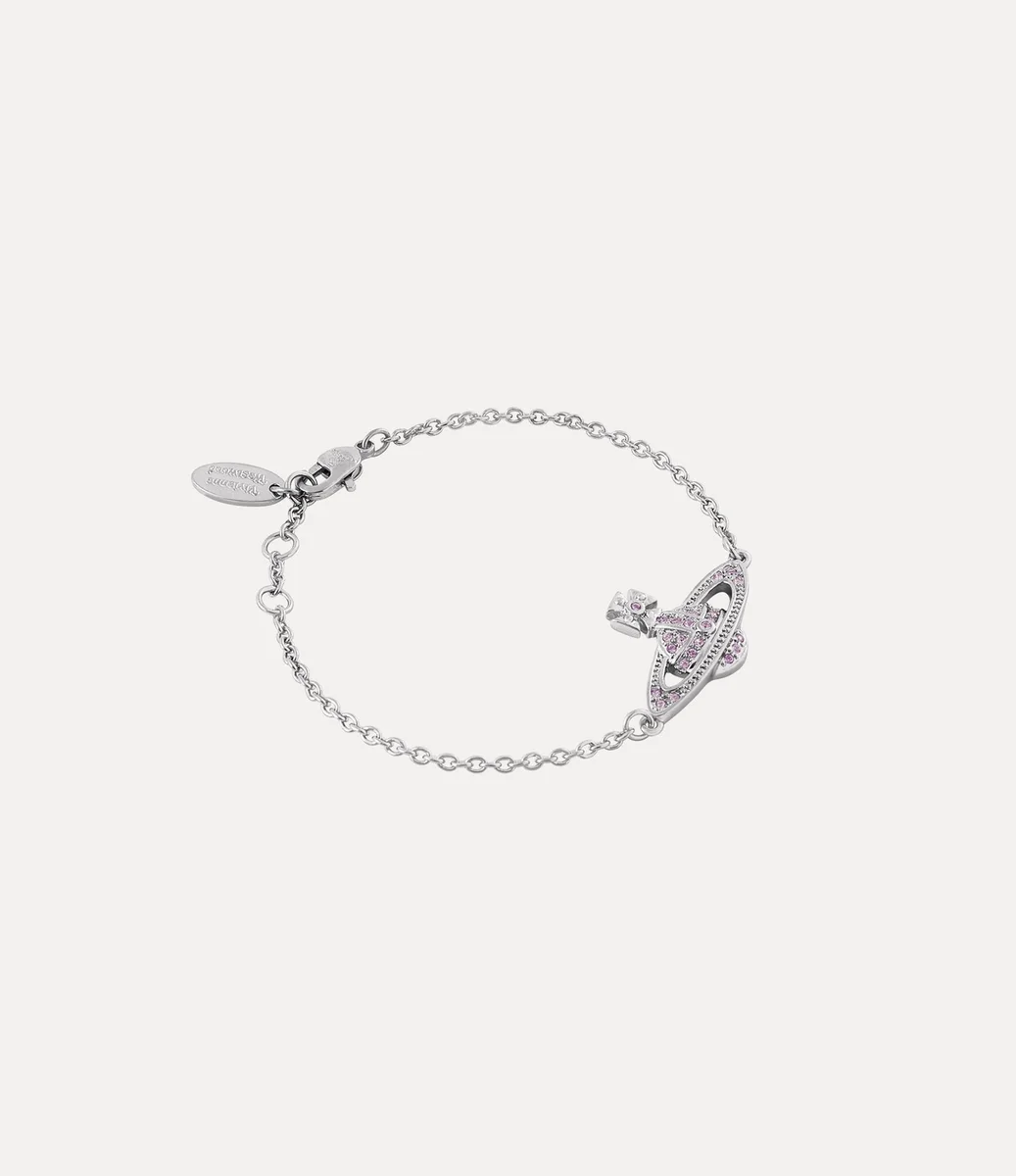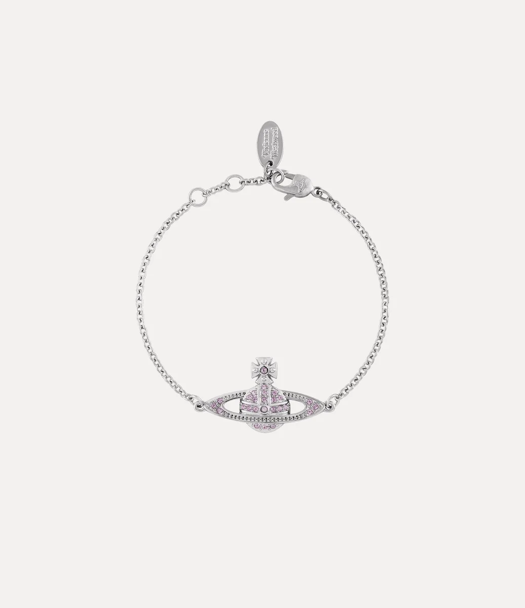 Our Mini Bas Relief Chain bracelet features a distinct silver-tone orb at the centre, inspired by the house’s signature motif. Encrusted with pavé-set violet crystals, the piece is finished with a letter-engraved oval tag at the secure lobster-clasp fastening.