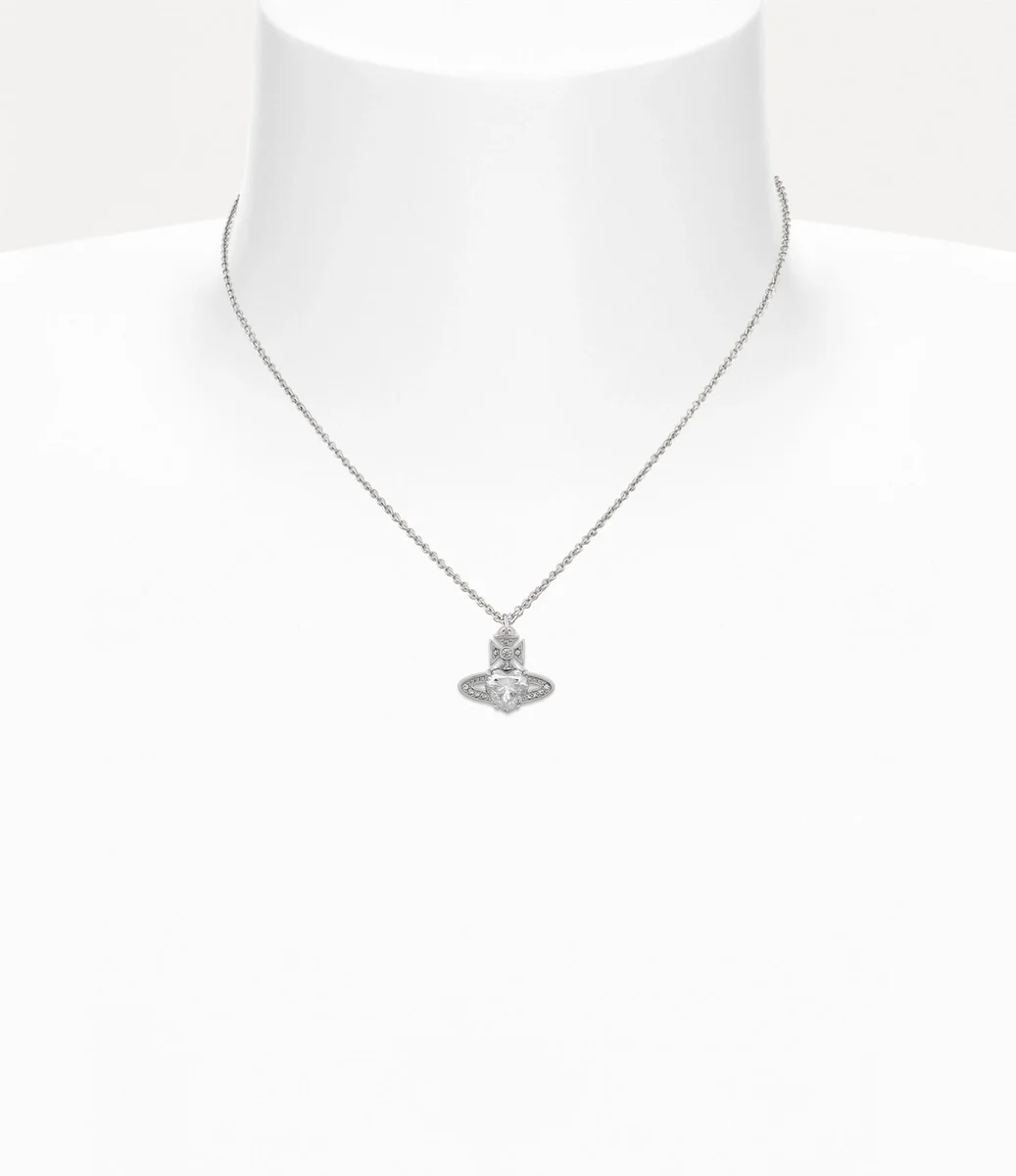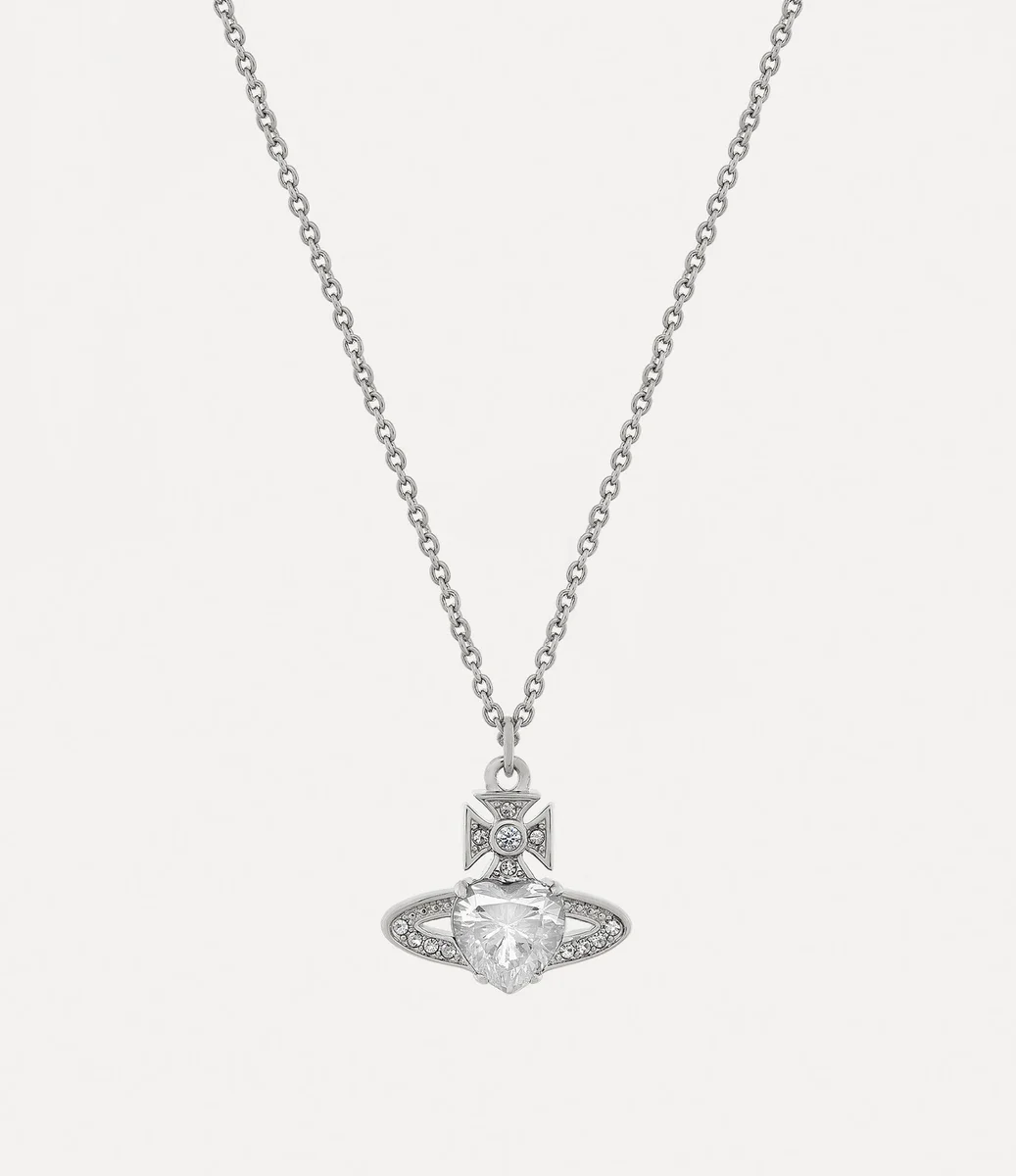 The heart shape recalls Vivienne’s affection for humanity and the planet. Our Ariella Pendant necklace features a heart-shaped gemstone in the centre of the design, complete with a crystal-encrusted Saturn ring – alluding to the house’s ethos of launching the past into the future.