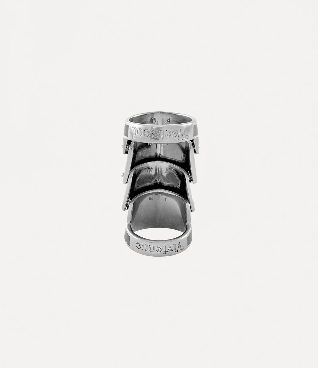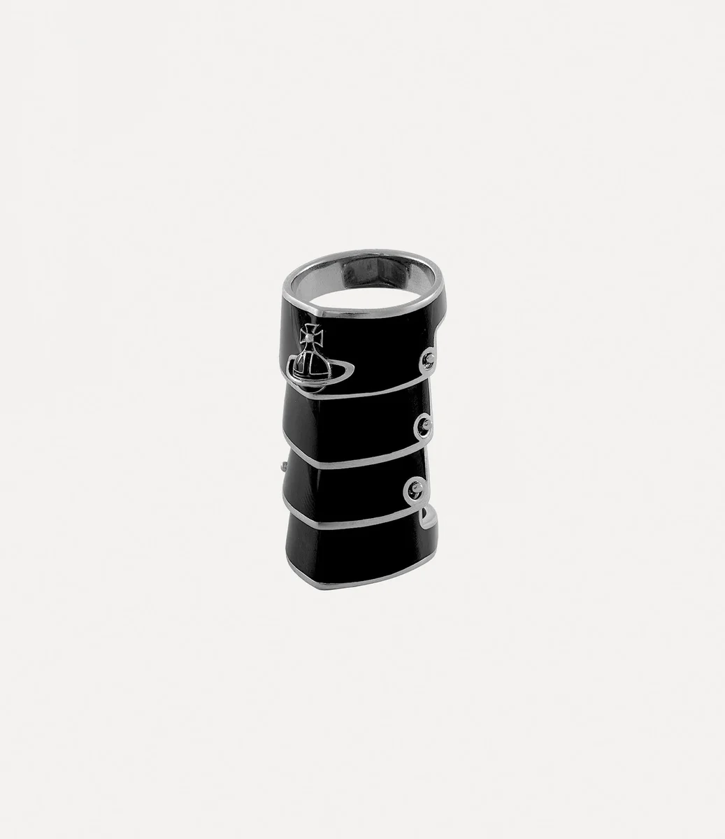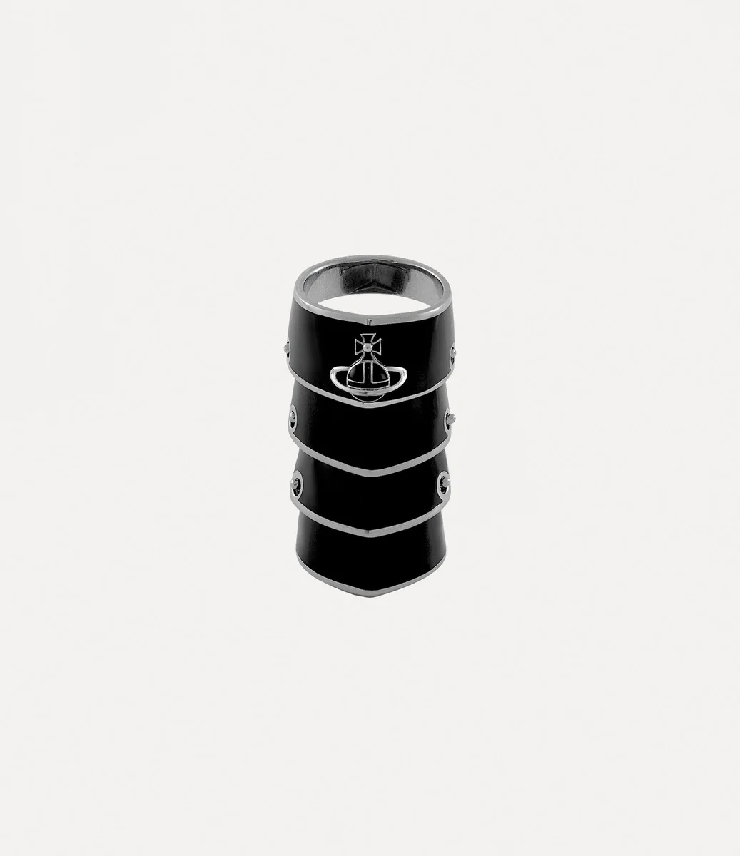 The Artemis ring emulates the design of the armour-inspired jackets from the Vivienne Westwood ‘Time Machine’ collection from 1988, reflecting Vivienne’s deep fascination with the Wallace Collection. The piece features hand-painted enamel sections that overlap, adorned with our signature orb motif – embodying the ethos of taking the past into the future.
