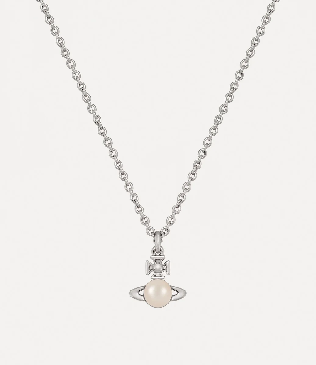 Vivienne Westwood Balbina Pendant necklace, in silver tones, features a glass-based pearl in the centre of the orb-shaped pendant.