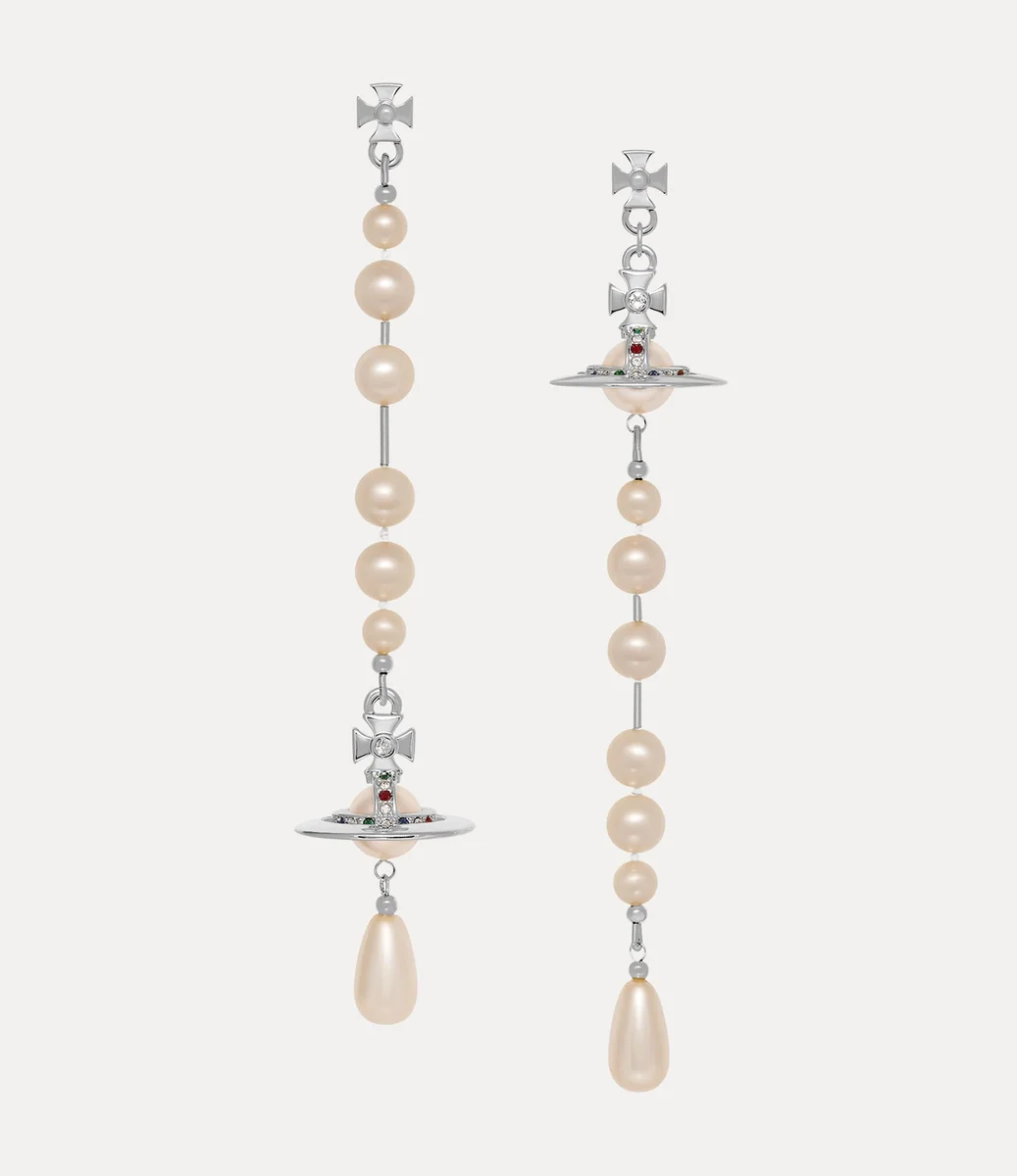 Vivienne Westwood first introduced the Broken Pearl earrings in the Autumn-Winter 2005-2006 ‘Propaganda’ collection, encapsulating the brand’s iconic punk-inspired aesthetic. These earrings showcase an uneven, asymmetrical design, reflecting the signature ‘broken’ motif of the original pearl necklace.