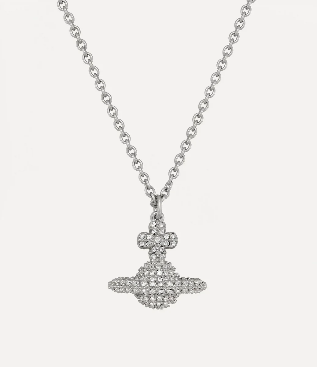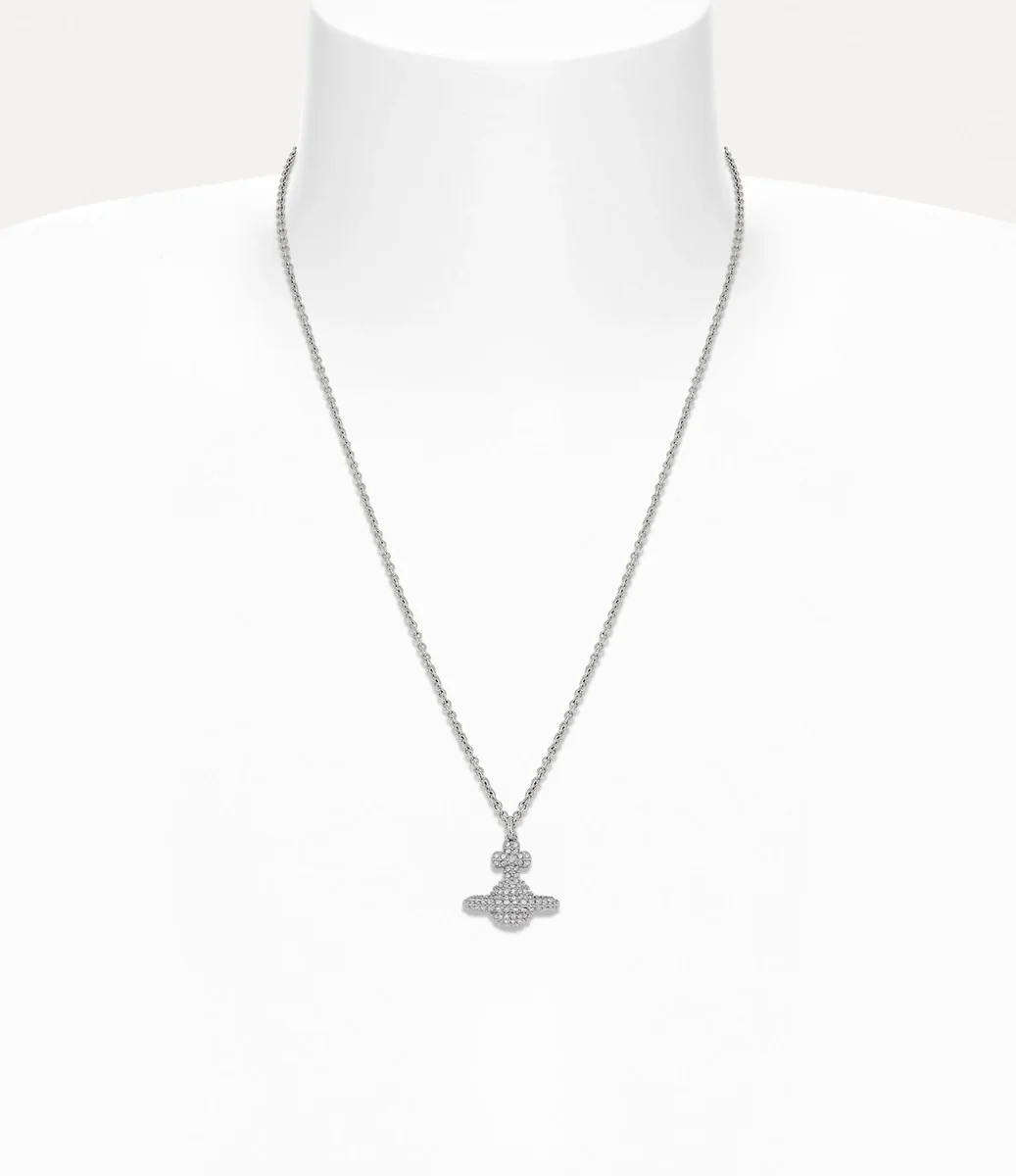 Vivienne Westwood Grace Small Pendant necklace features a three-dimensional orb motif in the centre of the design, embellished with glistening white crystals.