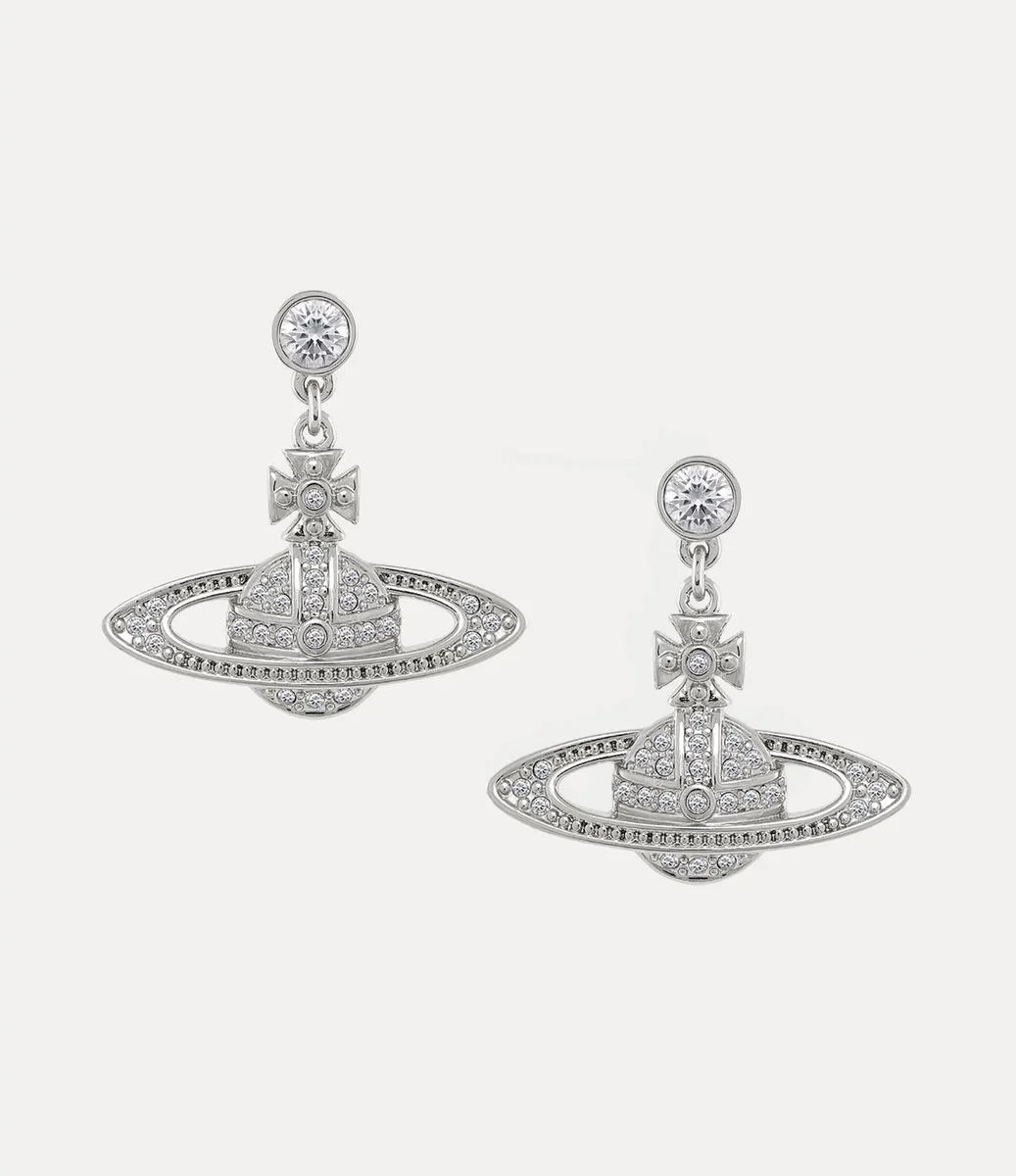 The orb silhouette has long been synonymous with the house, recalling Vivienne’s vision of launching tradition into the future. The Mini Bas Relief Drop earrings offer an orb silhouette, complete with polished silver-tone plating and tonal crystal details to finish.