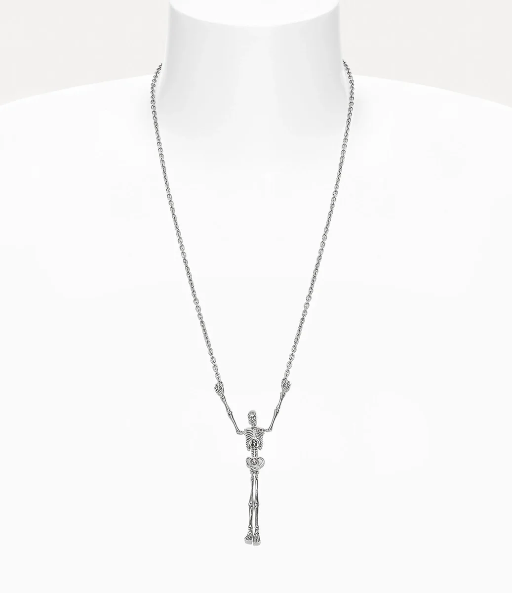 Vivienne Westwood the Skeleton Long necklace adopts a skeleton silhouette with movable joints, complete with a polished silver-tone finish.