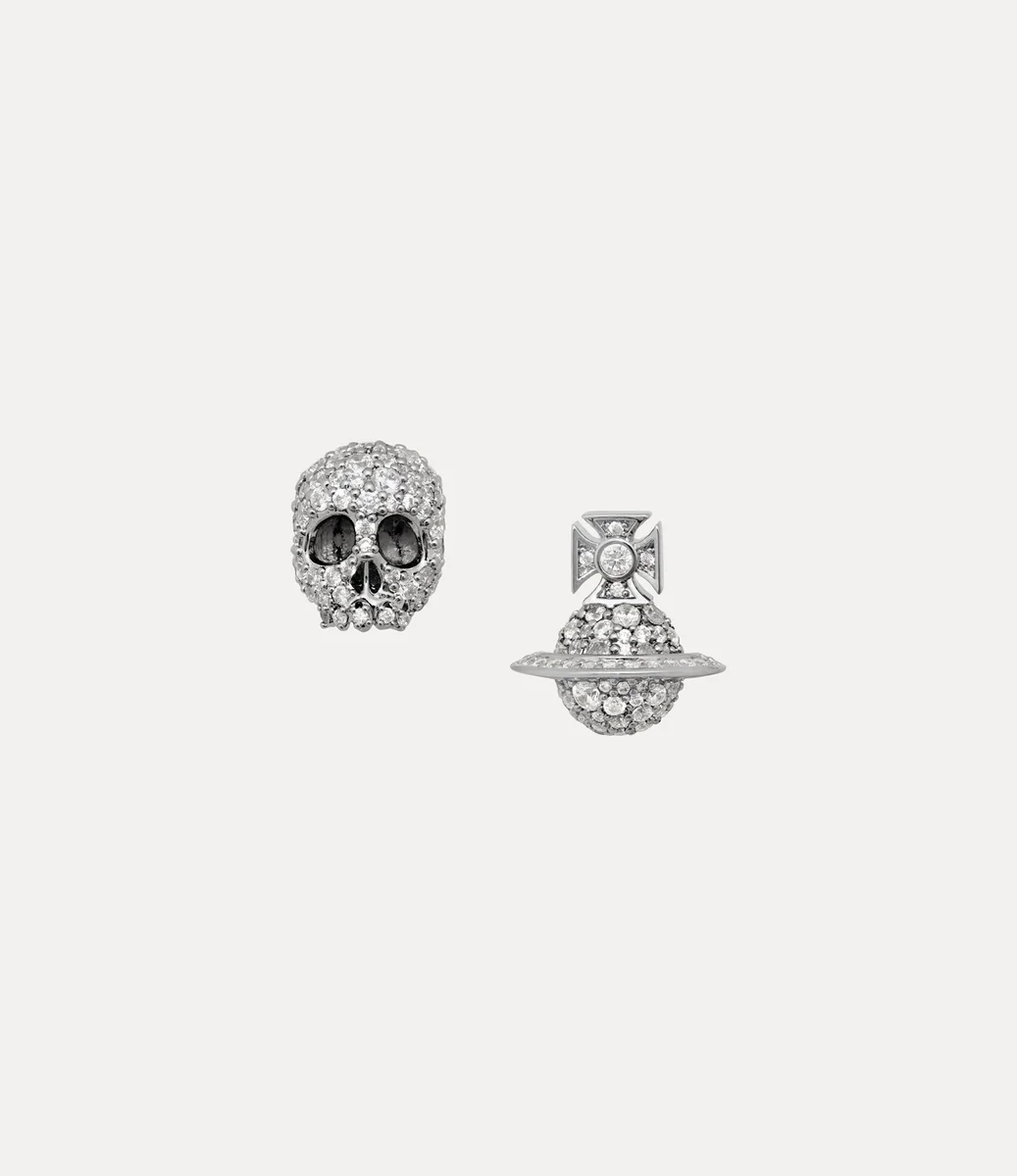 Our Circe Stud earrings reveal the house’s signature iconography through an asymmetric design, pairing the silver-tone skull and orb motifs. Encrusted with clear pavé-set crystals for a glistening finish, the pair is complete with our signature orb-shaped butterfly back fastenings.