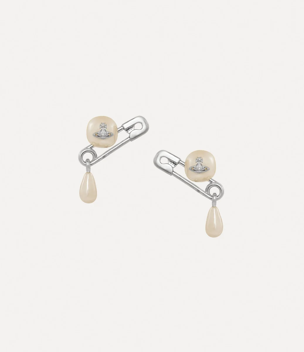 Our silver-toned Claude Small Stud earrings feature a rounded pearl with a central orb detail, enhanced by a classic safety pin motif that captures the house’s iconic punk aesthetic. The design offers a delicate baroque pearl drop, complete with our customised butterfly-back fastenings.