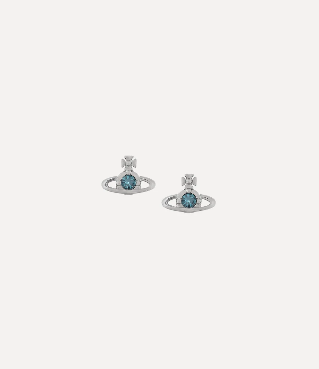 Vivienne Westwood Nano Solitaire earrings in silver-tone plating features the classic two-dimensional orb shape encrusted with glistening sapphire crystals.