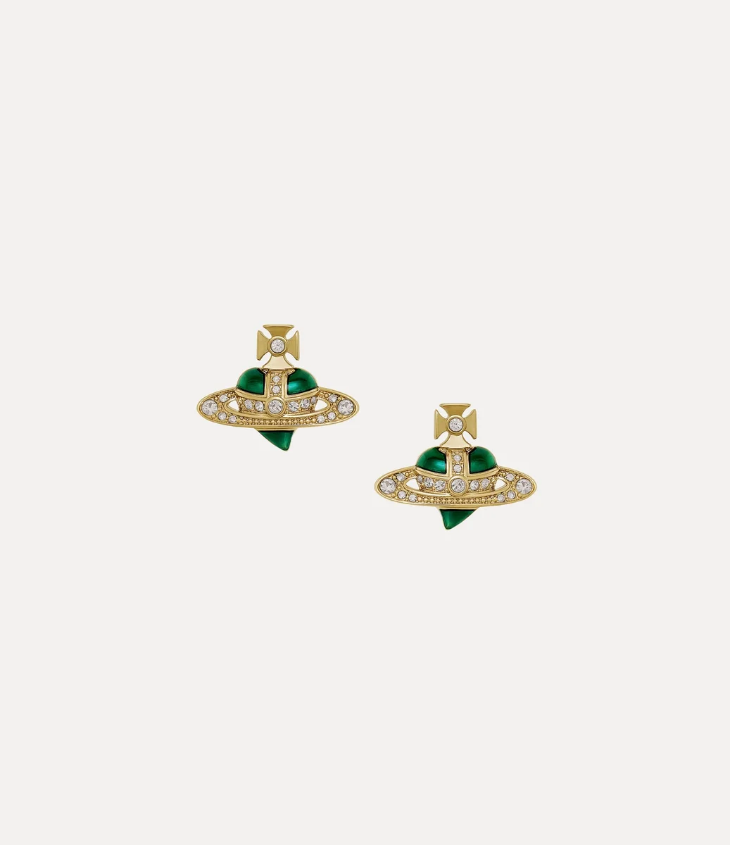The New Diamante Heart earrings revive the house’s signature asymmetric heart motif, which Vivienne used to evoke an affection for both humanity and the planet. Encrusted with glistening pavé crystals, the design is finished with green hand-painted enamel, paired with our signature orb butterfly-back fastenings.