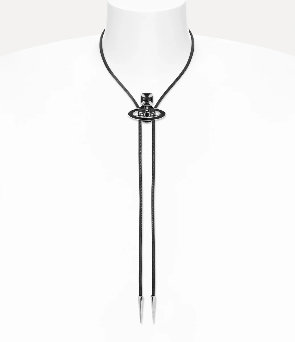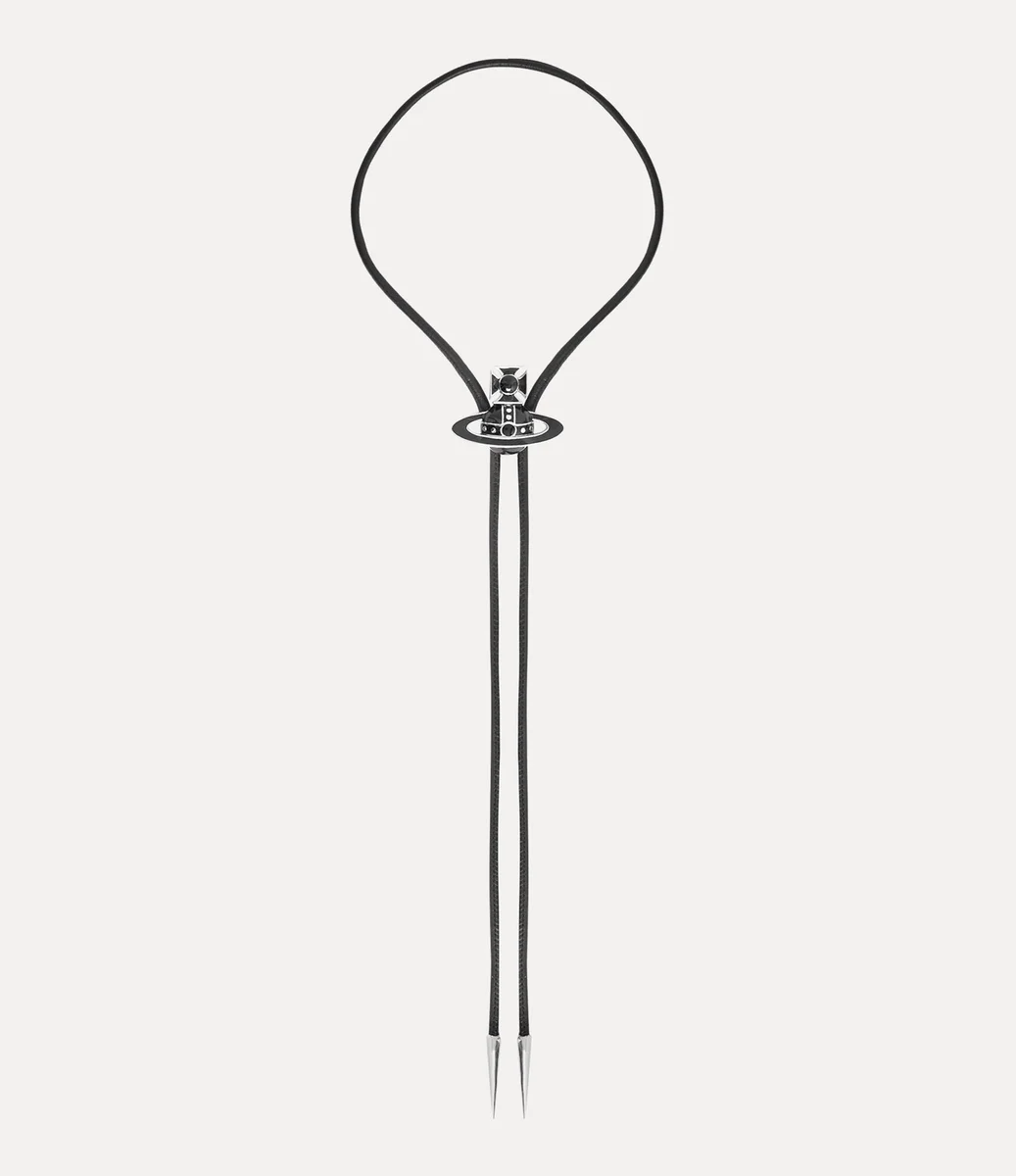 Vivienne Westwood Bolo tie is reimagined with a stitched leather cord and features an adjustable orb-shaped centerpiece, completed with silver-toned tips.