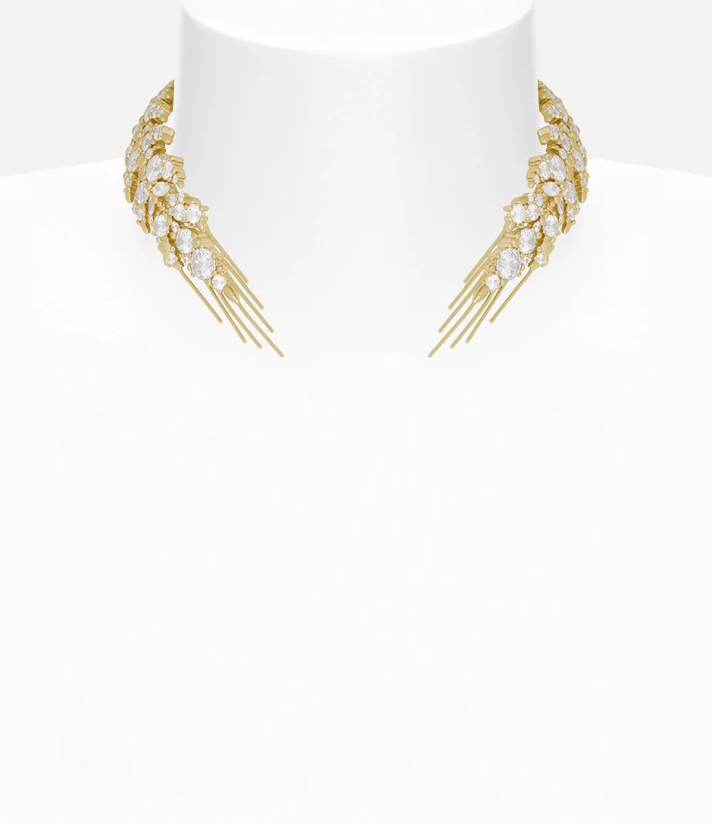 Vivienne Westwood Chloris necklace in gold-tone plating features intertwined wheat motifs with pavé crystals and a discreet hinge closure.